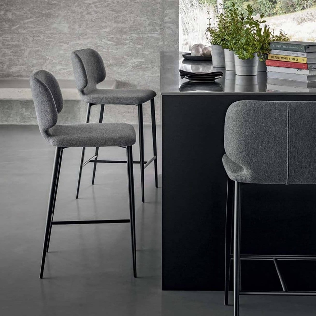 Designed with the perfect balance of form and function, the Wrap Bar Stool wraps you in comfort with its gently curved backrest and soft, padded seat. Whether placed at a kitchen island or home bar, its ergonomically contoured silhouette and built-in footrest encourage extended sitting in a relaxed yet upright posture. The slim, subtly flared metal legs offer visual lightness while ensuring structural integrity.