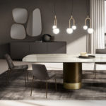 Featuring a striking bronze base and elegant marble top, the Eforma Cilindro Dining Table is a stunning piece of furniture in the dining room. The oblique edges of the 20 mm thick panels are available in either circular, rectangular or shaped shapes.