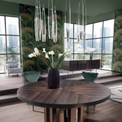 As the name suggests, Modus is a round dining table with a series of square wooden columns supporting it on its base. Several species of wood are available for the table tops, as well as different standard sizes that are available. The dimensions of Modus can also be customized according to the requirements of the customer.