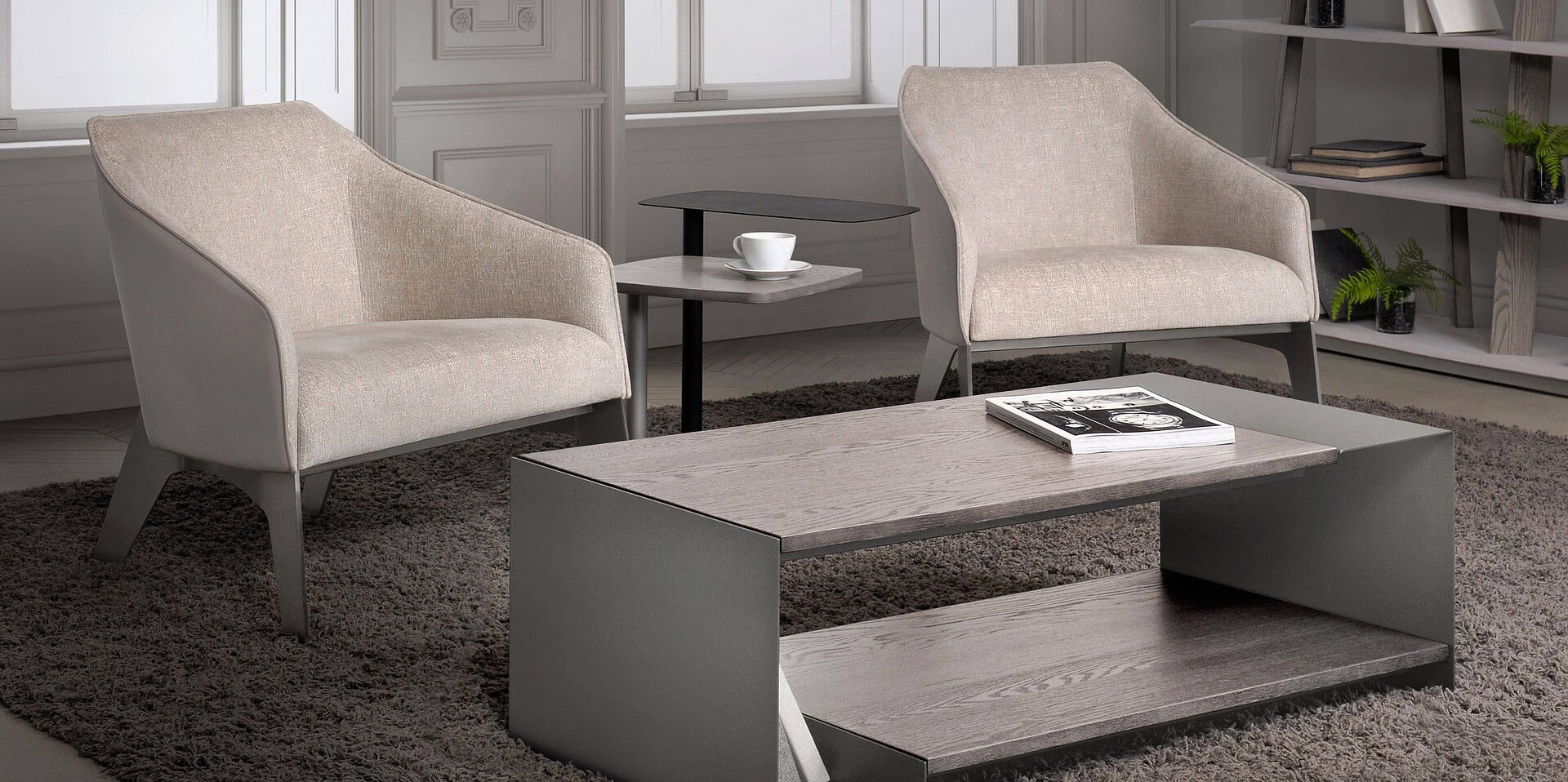 The Duo Table by Trica is effortlessly stunning with ample space to store and display. Perfect for any living room or media space, its elevated design with two shelving units and glass structure is clean, modern, and sophisticated.