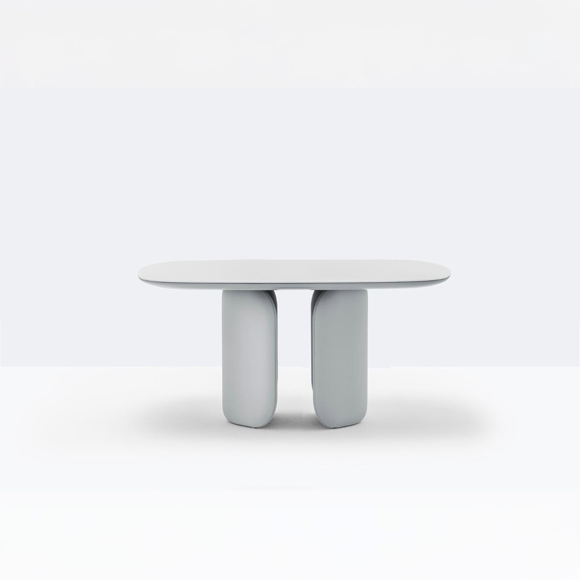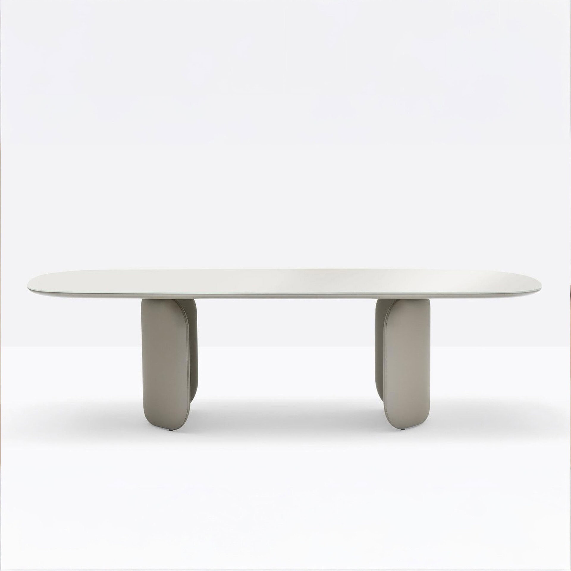 The Elinor Table is an elegant statement piece defined by fluid curves and refined geometry. Its soft, sculptural base is formed by two symmetrical elements that evoke the form of closed or open brackets, lending the table a sense of dynamic balance. The base is upholstered for a luxurious touch, concealing a supportive inner steel frame and creating a sense of visual and structural harmony.
