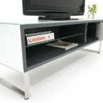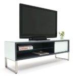 Sharp, clean lines and hard corners define the Fortezza TV Stand, a beautiful contemporary entertainment storage and display piece by Glassisimo.