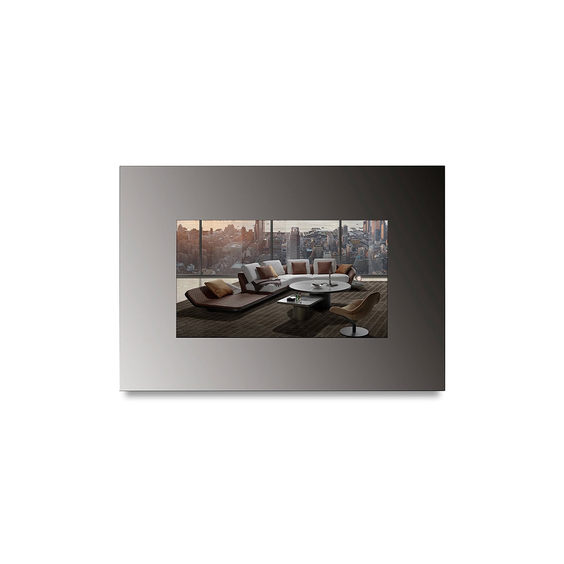 • Mirror-clad frame conceals television