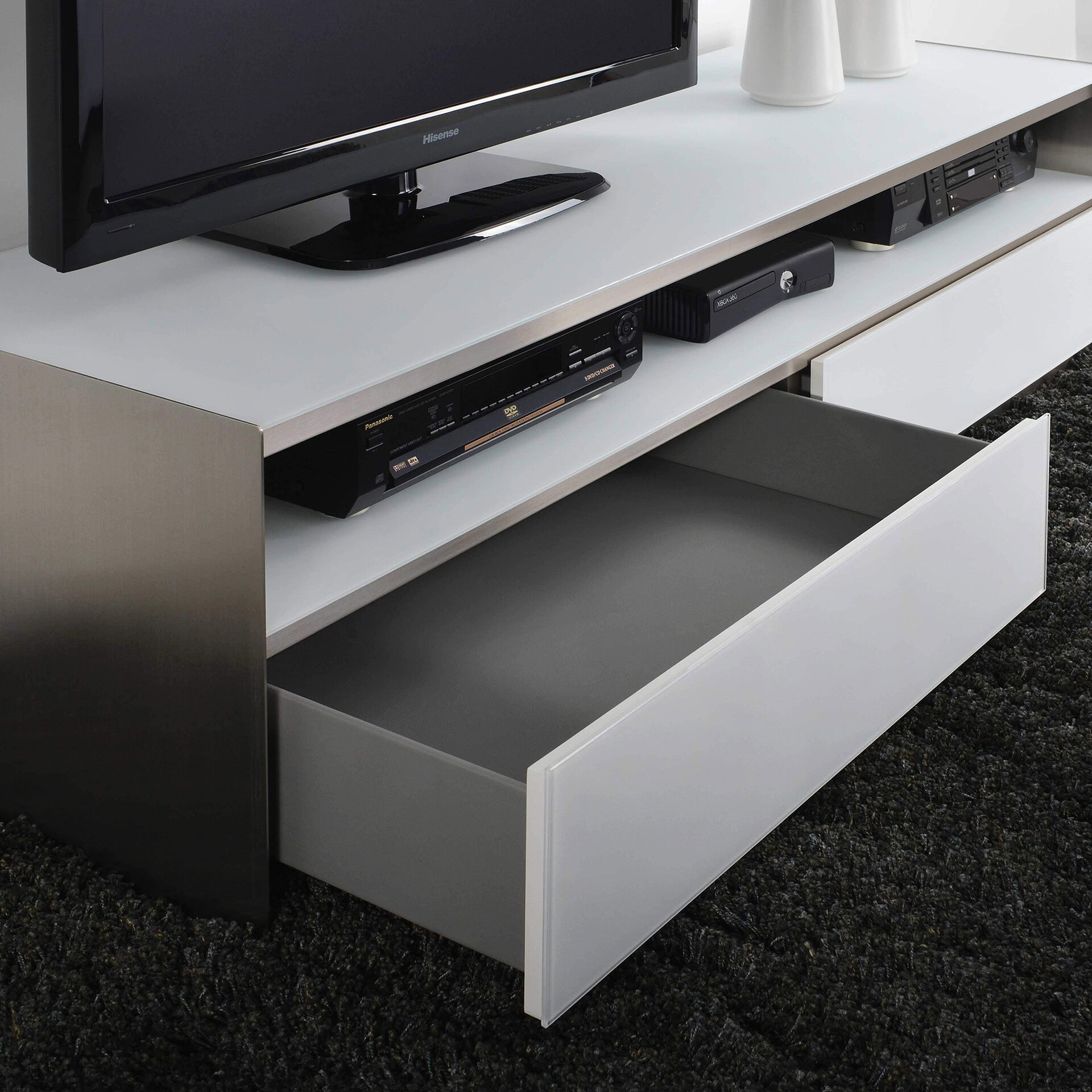 Trica's Absolute Media Console provides accessible storage space for all things media in a versatile and stylish way. Adjustable drawers and feet make this unit seamless to move in any space of a living room. Put the best electronic and media devices on display while creating a stunning focal point in a room.