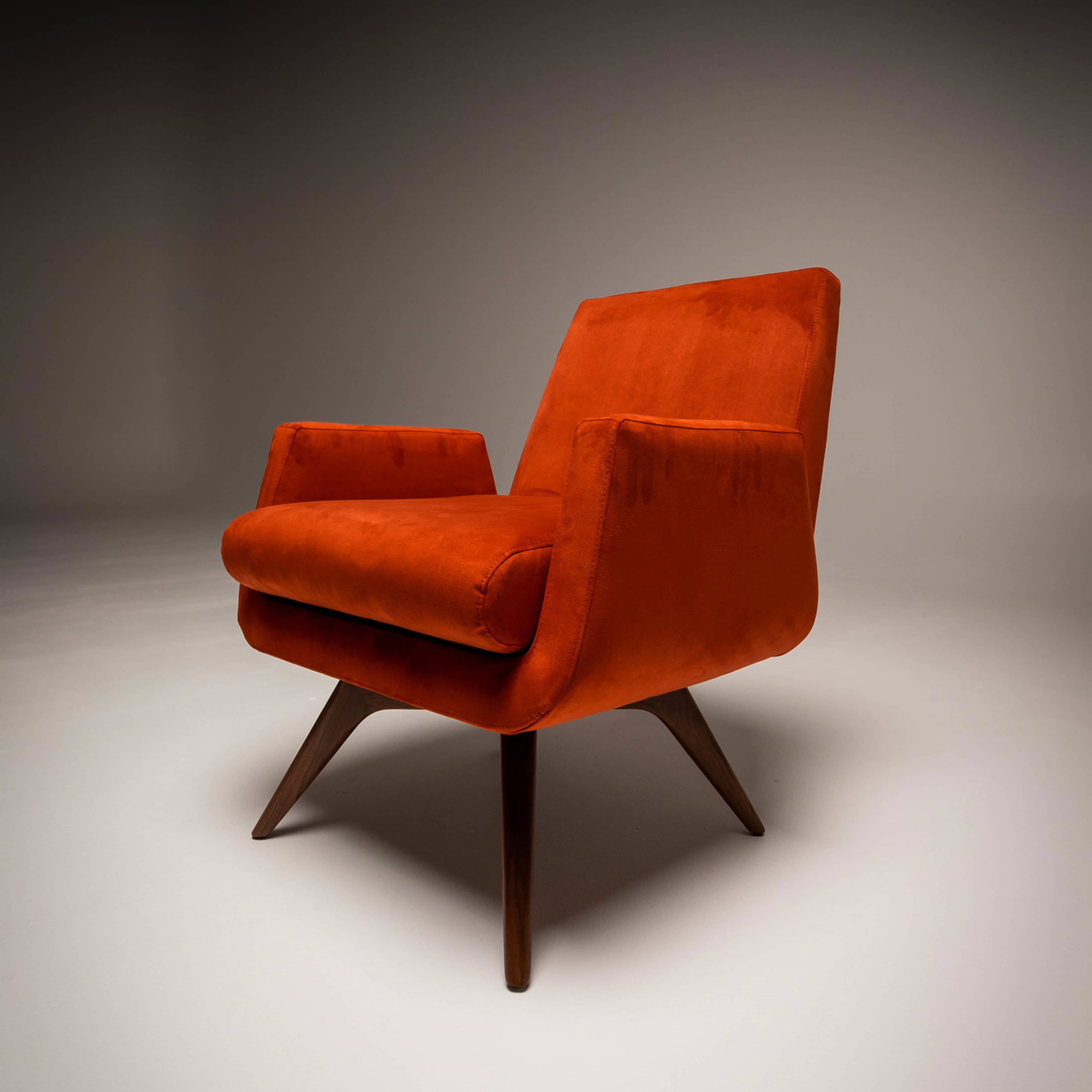 Walnut Wood Frame, High-reliency foam seat, Leather, Fabric or Ultrasuede