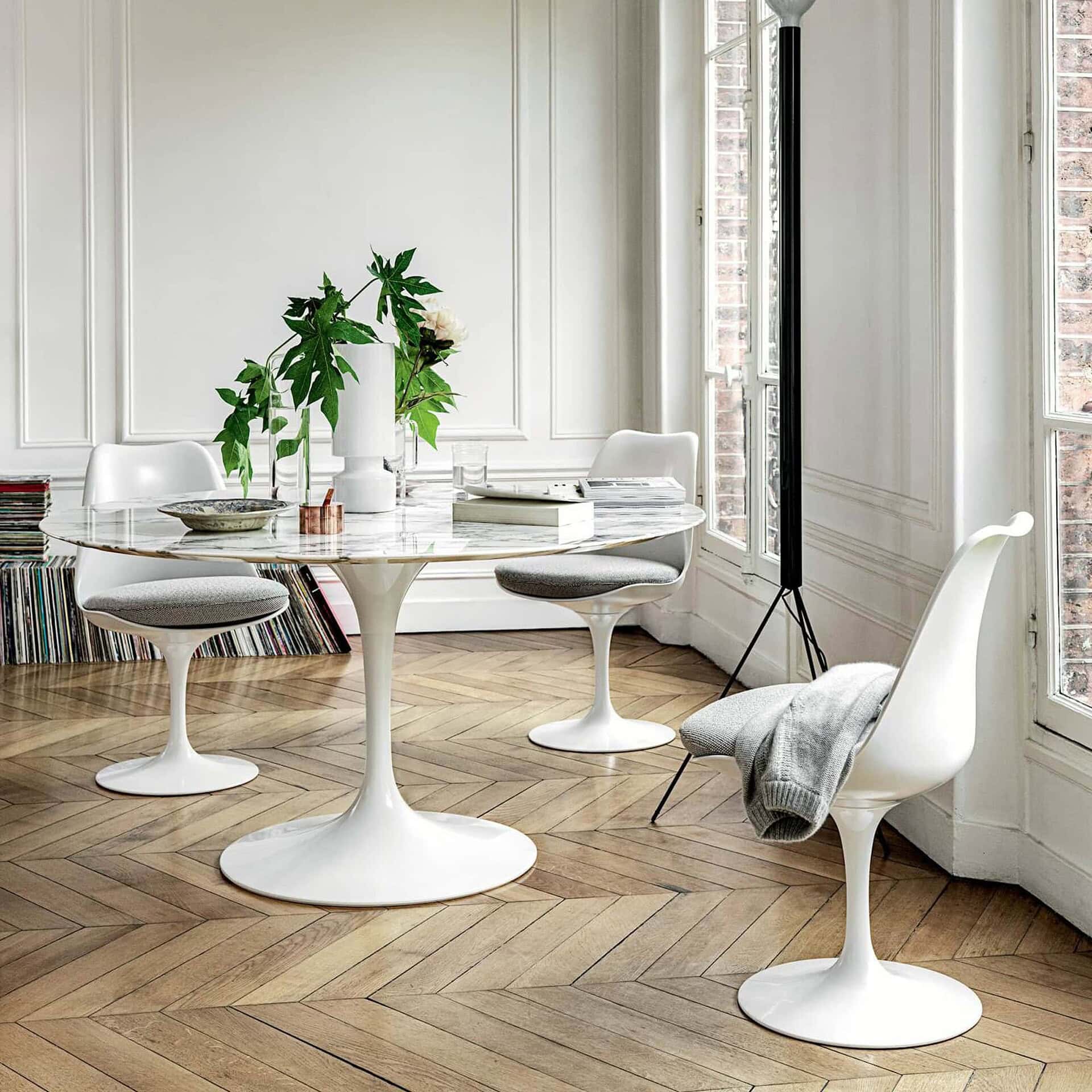 Each cushion is composed of 40 hand-cut and sewn squares—available in leather, suede, or fabric—secured with belting leather straps dyed to match. The polished chrome or ultra-matte onyx steel frame is stamped with the Knoll logo and Mies van der Rohe’s signature, certifying its authenticity. With its canted seat angle and sculptural silhouette, the Barcelona Chair offers both support and sophistication.