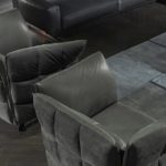 Carezza or Natural Velour leather; multi-layer poplar; metal frame; chrome-plated or black nickel.
