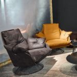 The lacquered base is available in chrome or five RAL colors swivels and is the anchor to the design. The rest of the shell rises out of the base. The solid back and sides hold an interior cushion that you literally sink into. For all of the comfort the high design is still very evident! Choose fabric or leather for the cushions - your choice! Warranted to meet or exceed industry standards.