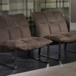 Natural Velour leather; metal frame; intertwined elastic belts; chrome-plated metal base.