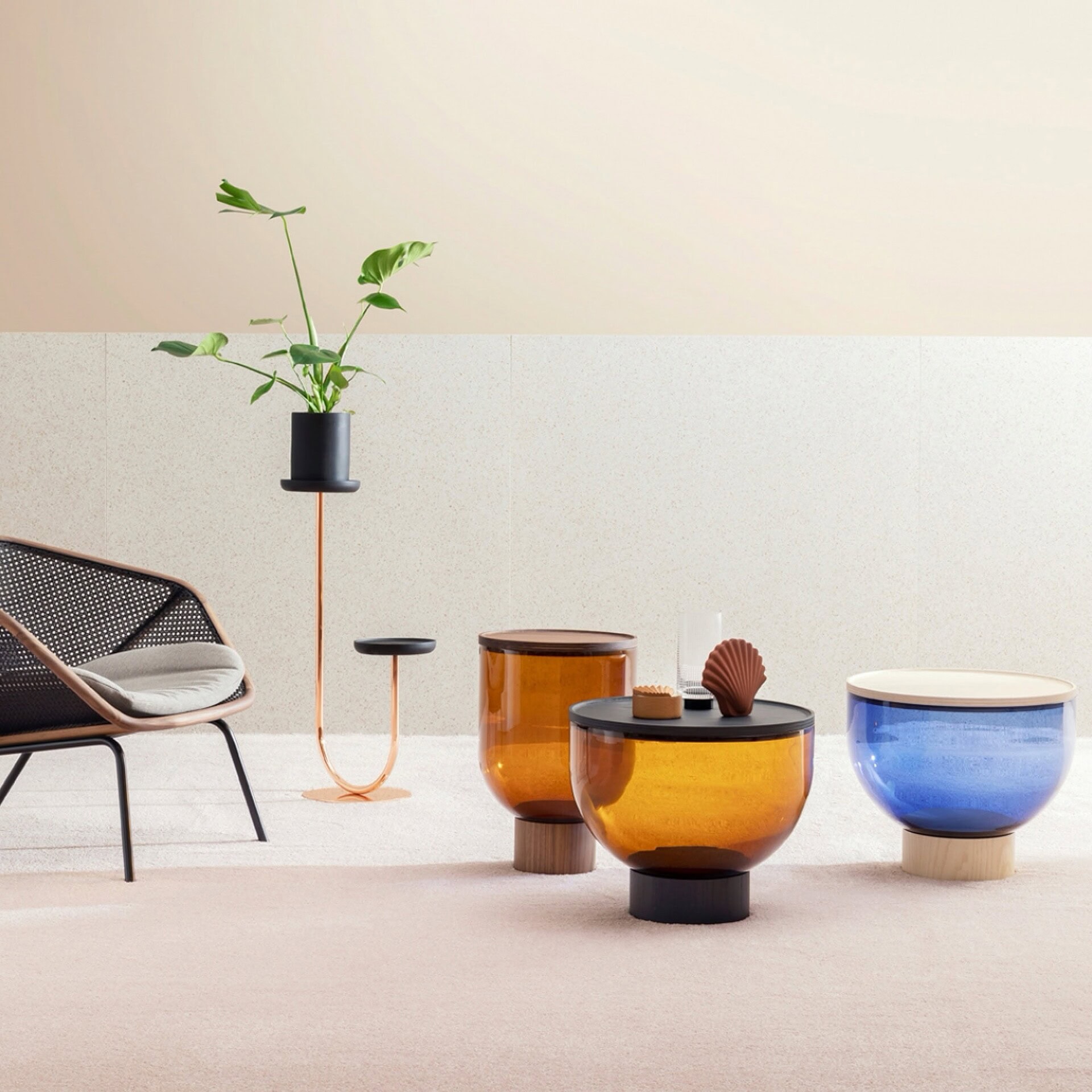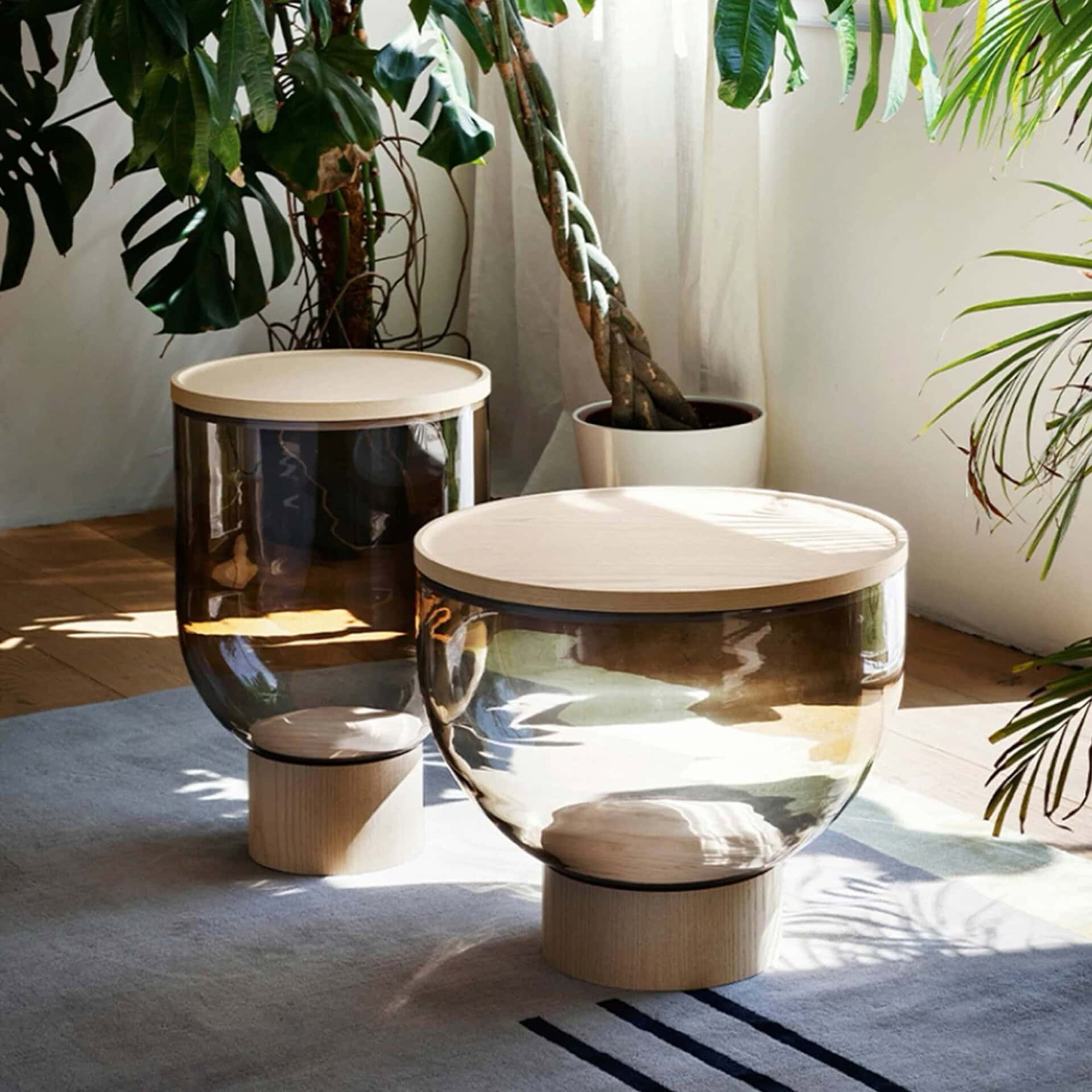 Offered in two distinctive sizes and a refined palette of finishes, Mastea invites harmonious composition as a standalone accent or arranged in dynamic groupings. The solid wood top in ash, black ash, or exquisite Canaletto walnut contrasts with the base’s delicate transparency—available in Amber, Blue, or Smoked Gray blown glass. This interplay of earthy warmth and color-suffused glass imparts a sophisticated, sculptural presence to any space, making Mastea much more than a table: it’s an heirloom of contemporary Italian design.