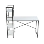 Unlike any other office desk. The Evelyn's wide tabletop is connected to a for shelved metal frame that is sure to keep clutter off of your desk by holding all of your office supplies, files or any accessories of your choice. The feet on both the desk and the shelving frame are fully adjustable