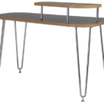 With melamine surfaces and four strong deep v double legs in chrome with adjustable feet for increased stability. The desk also includes a smaller, upper shelf on either the right or left side which is perfect for a monitory, a place to showcase accessories, or even for additional office supplies which you do not wish on your main working surface.