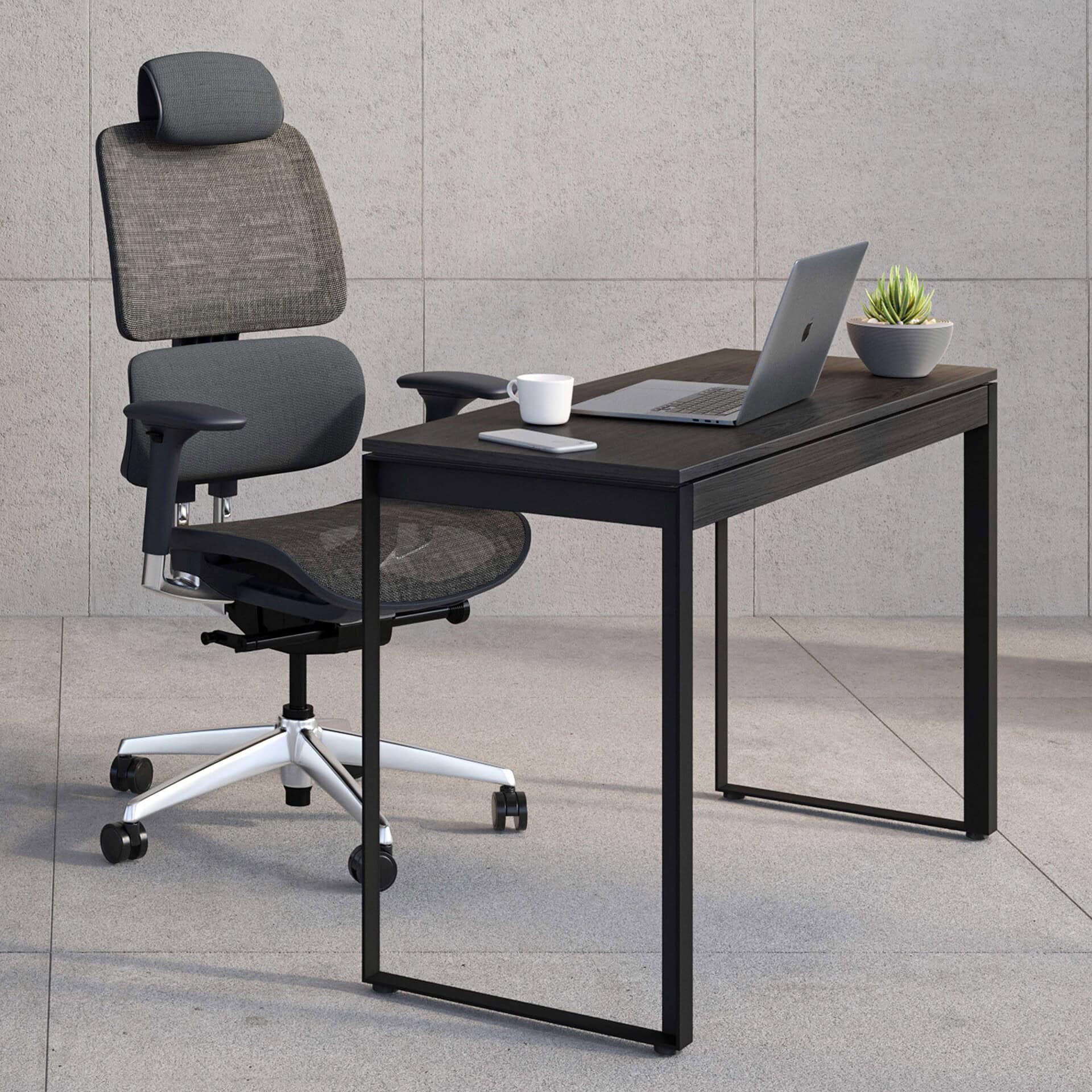 Sleek modern desk with black finish, perfect for stylish home office setups.