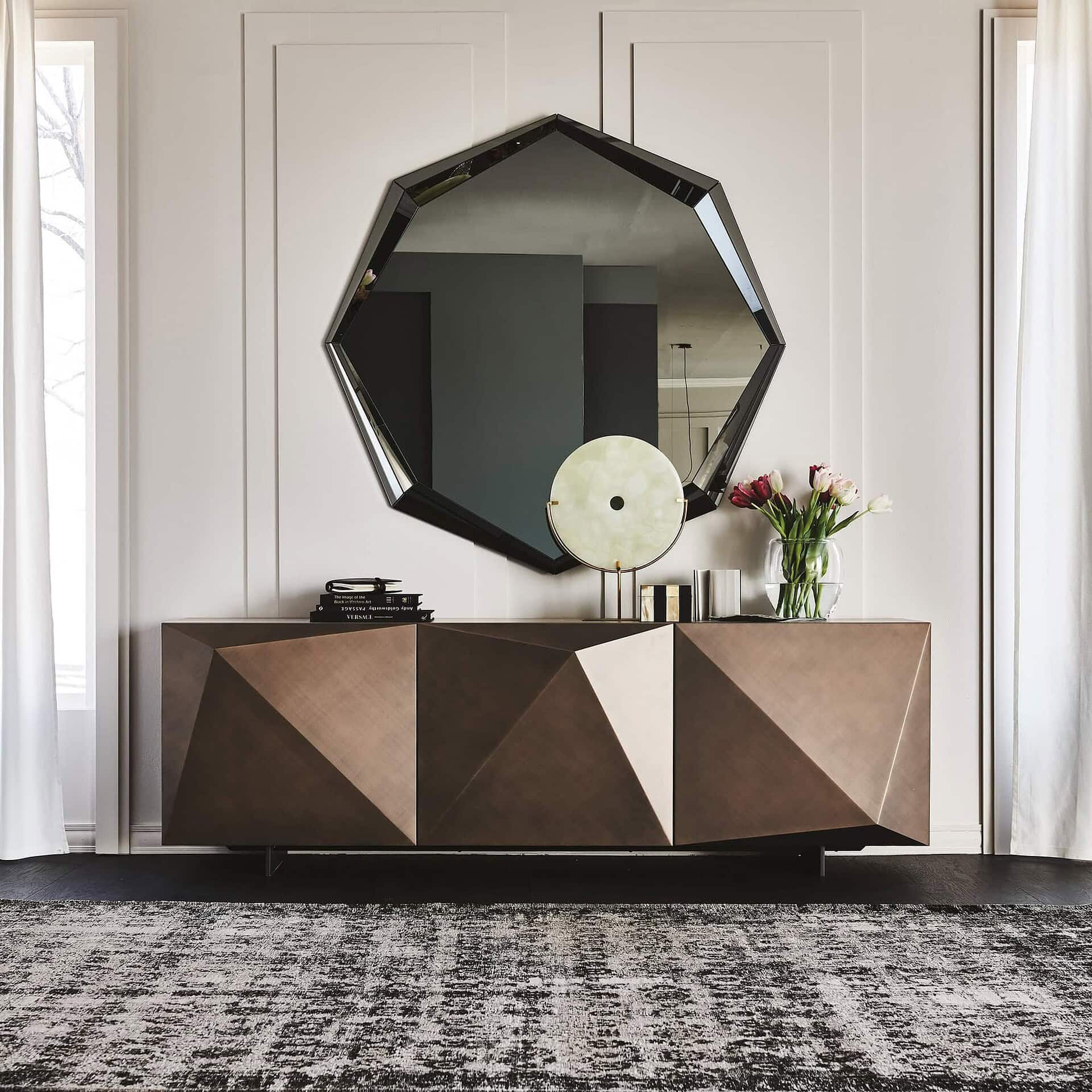The Kayak Sideboard by Andrea Lucatello is a striking fusion of geometry and luxury, designed to bring a sculptural presence to any living or dining space. Its distinctive faceted doors create a captivating interplay of light and shadow, with finishes that elevate its architectural form. Whether showcased in a contemporary home or an upscale contract setting, Kayak’s design invites attention while providing refined storage solutions. The craftsmanship behind each piece ensures that it is as much an objet d’art as it is a functional element of interior design.