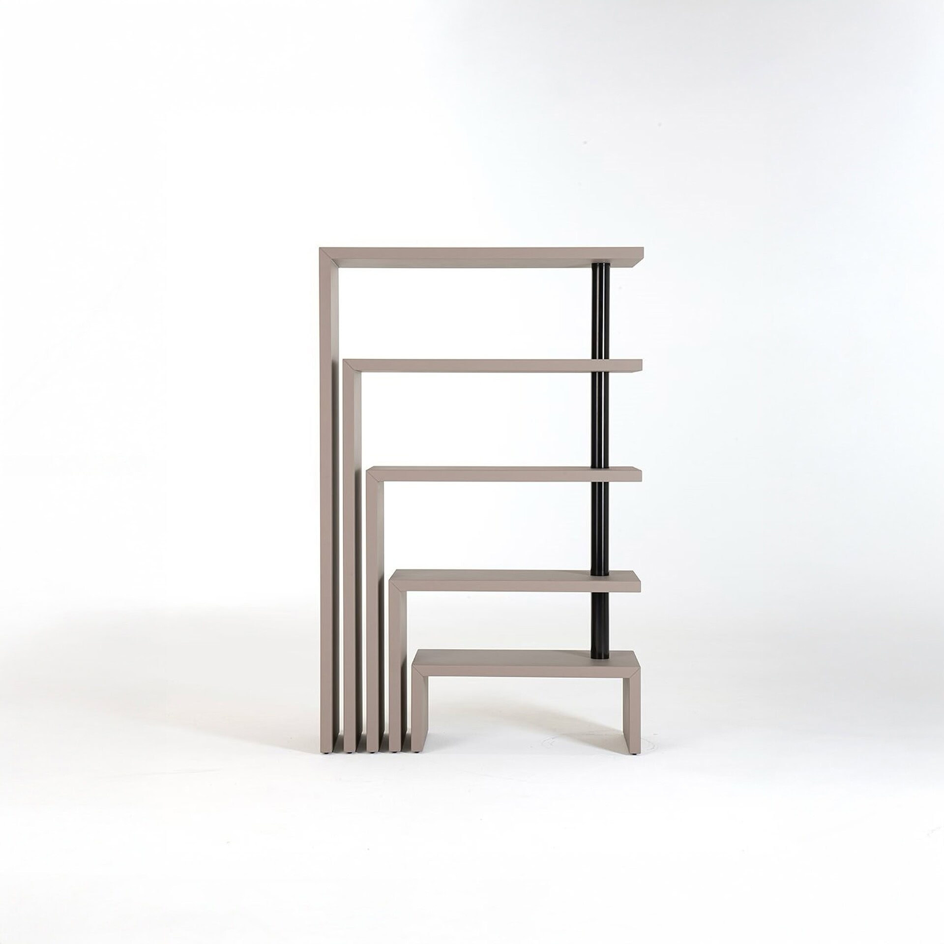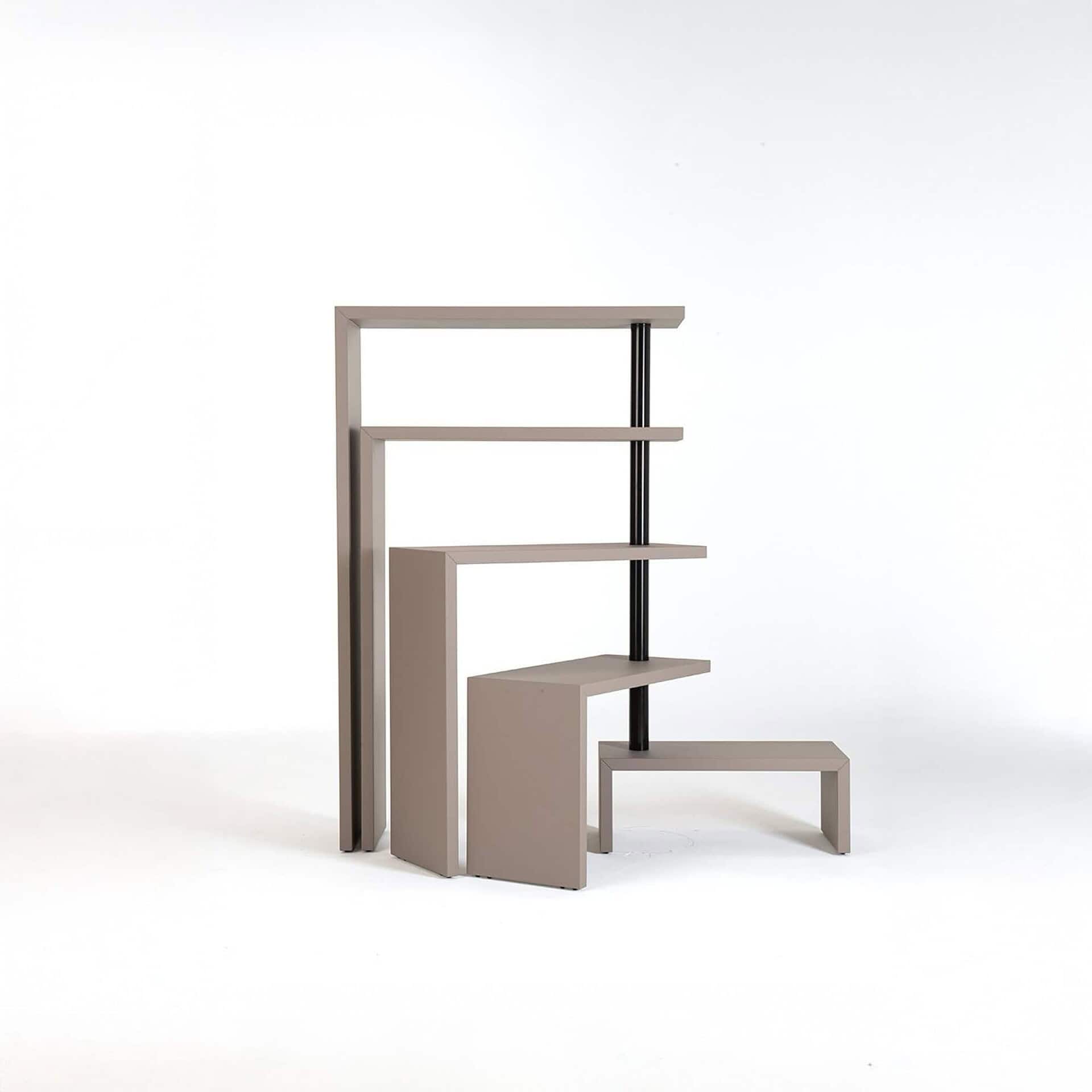 Constructed from high-density MDF with a scratch-resistant embossed lacquer finish, the Joy Bookshelf pairs durability with refined aesthetics. The metal support column includes a painted steel joint that matches or contrasts the shelf color, depending on the finish. Available in 5- or 7-shelf versions, Joy is offered in a curated palette that includes bold tones like amaranth and espresso alongside neutral options such as talc and hemp.