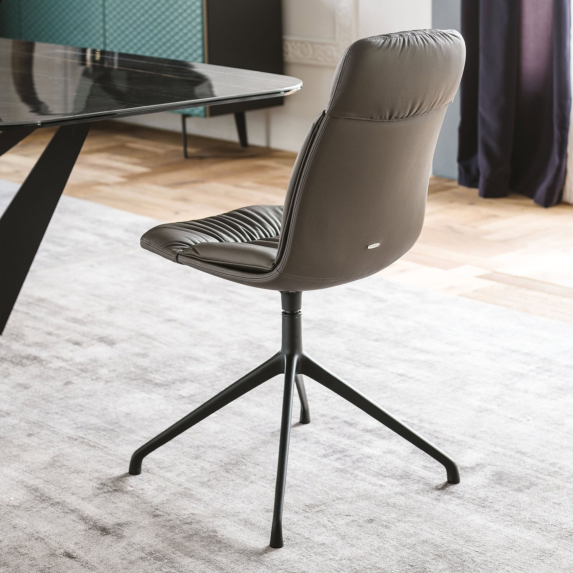 [vc_row][vc_column][vc_column_text css=""]Perfect for both casual and formal settings, the Kelly Swivel Chair comes in an extensive selection of fabrics, synthetic leathers, and soft leathers, allowing you to tailor its look to your space. The meticulous craftsmanship ensures lasting durability, while the refined stitching and materials bring timeless style to any interior. Whether you choose it for dining, meeting rooms, or accent seating, the Kelly adds an element of understated luxury.[/vc_column_text][/vc_column][/vc_row]