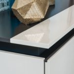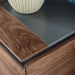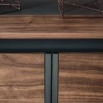 The detailing on the doors and top is understated and so elegant. This piece can work as well in the dining room as in an entry or even an office. The accent color on this buffet is always in a matt graphite but you get to choose the rest - walnut, burnt oak or if lacquer is what you love glossy oyster or grey. The detail of the matt graphite is stunning and shows off the design to perfection. This is a timeless piece and one you will want to invest in. Warranted to meet or exceed industry standards.