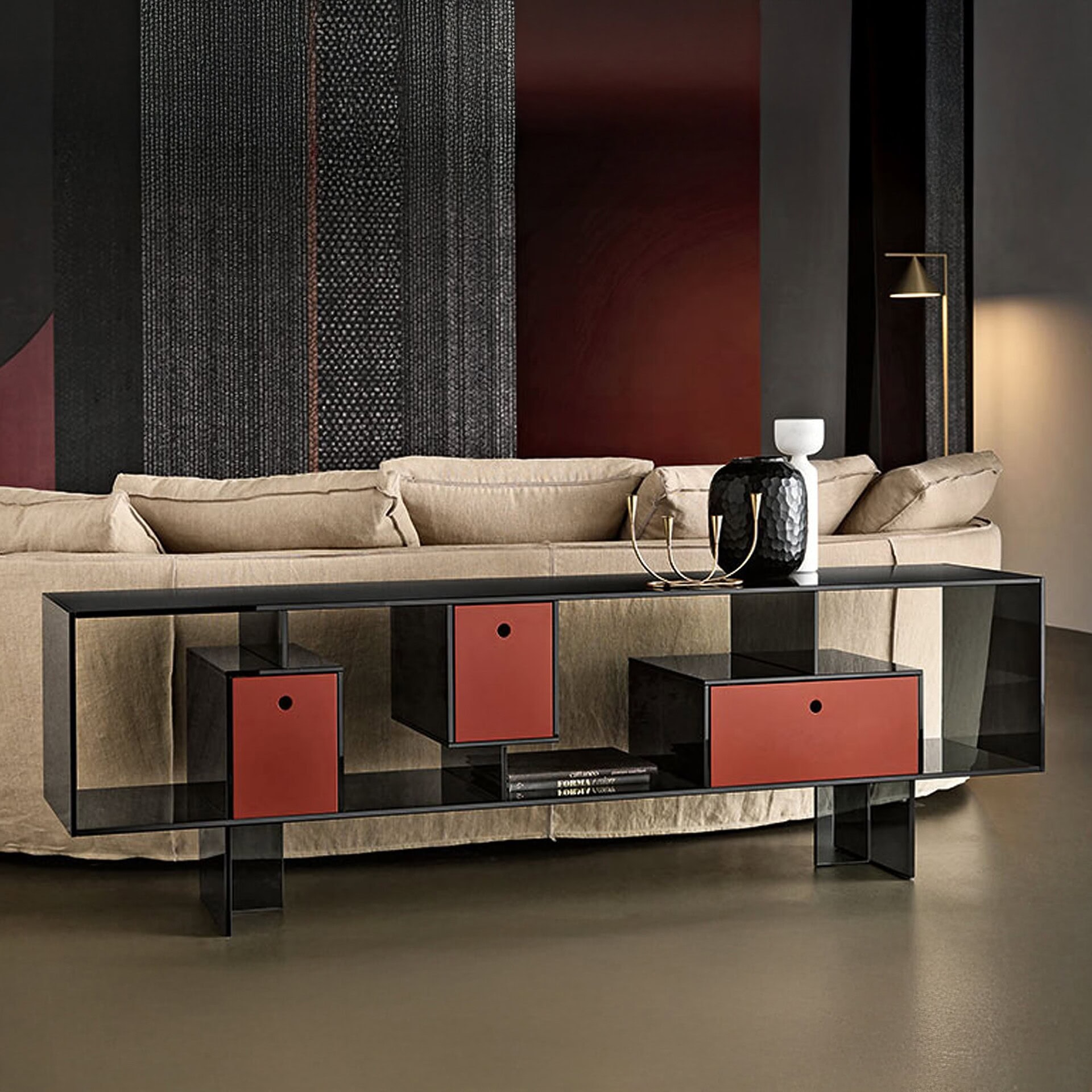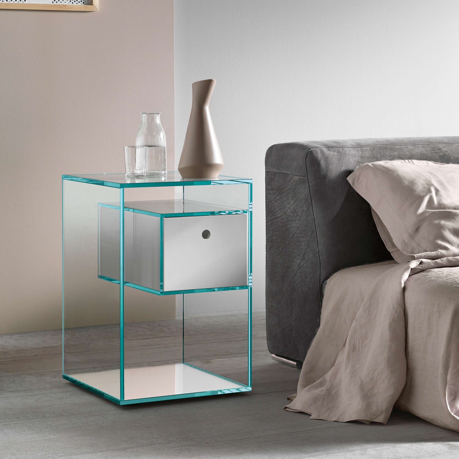 Glass, wood and mirror