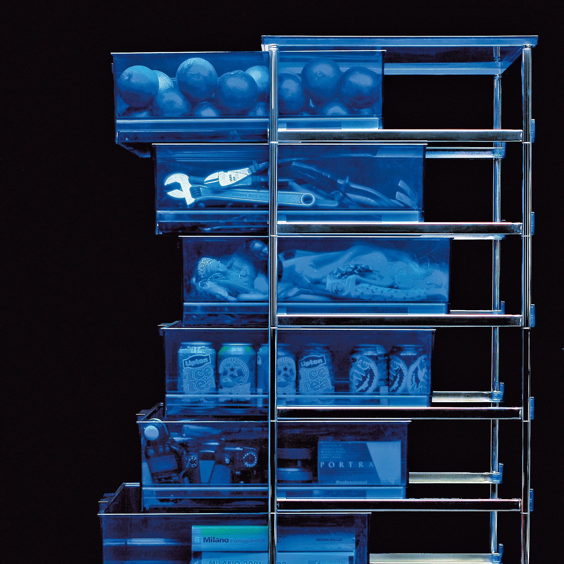 Presented in a matte finish in white, black, green, plum and light blue, the Mobil chest of drawers won the Golden Compass Award in 1994. This new edition is made from recycled industrial materials and features the same robust construction and functionality as the original. It is comprised of drawers, shelves, and tops connected by an aluminum structure. This new finish is characterized by the color of the structure and the color of the wheels, which are now black rather than grey. This versatile product can be used in any room of the house, including the bedroom, living room, and bathroom. It is not only suitable for use in the office, but also in every room in the home.
