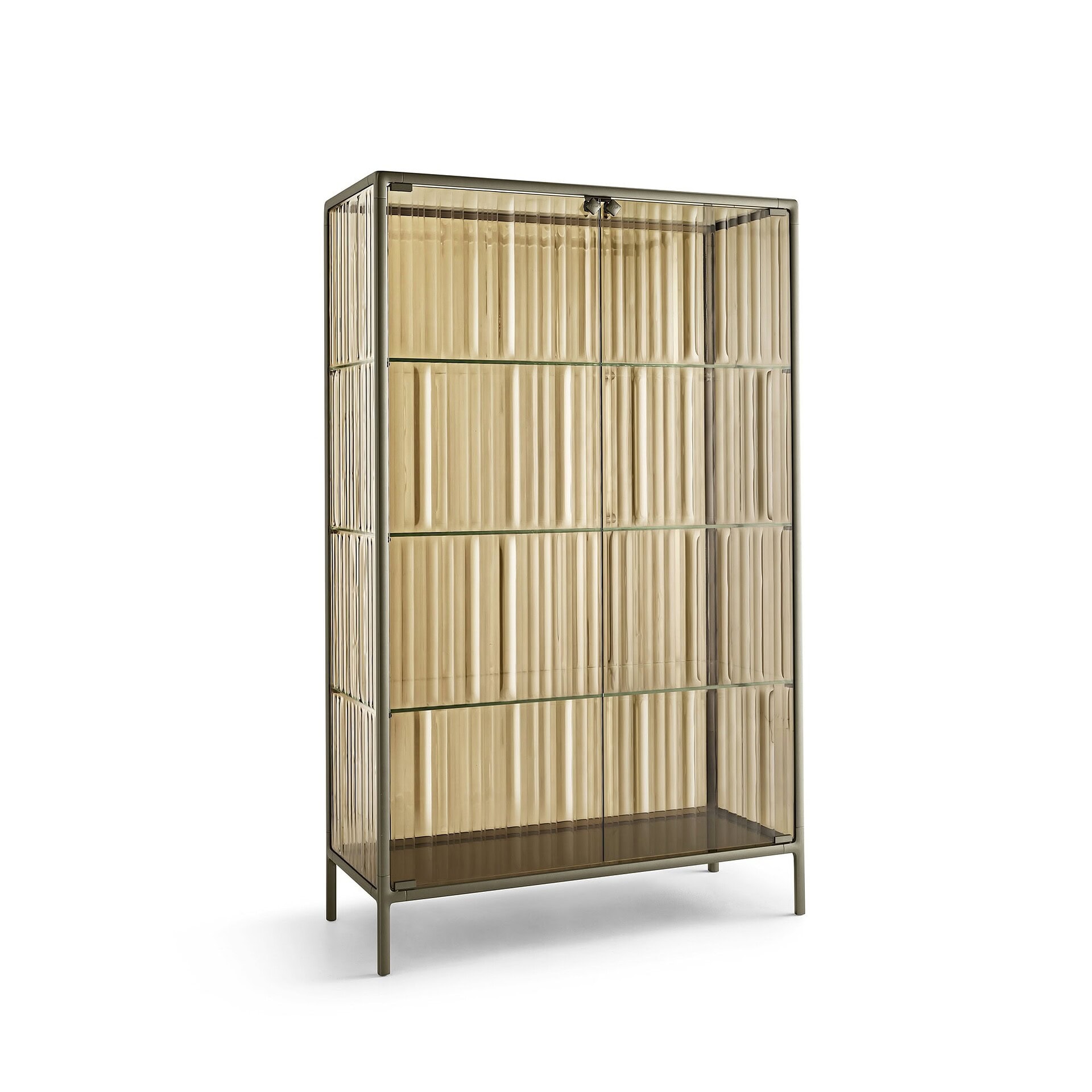 Designed by Marcel Wanders, the Echo Line Showcase is a refined blend of elegance and modern craftsmanship. This striking piece features a minimalist frame in varnished aluminum, paired with intricately fused glass panels for a textured and luminous effect. Clean lines and a transparent silhouette allow the Echo Line to integrate effortlessly into both contemporary and transitional interiors, whether used as a display cabinet or to showcase treasured collectibles. Optional integrated LED lighting enhances visibility and ambience, highlighting the artisan glasswork and the items displayed within.
