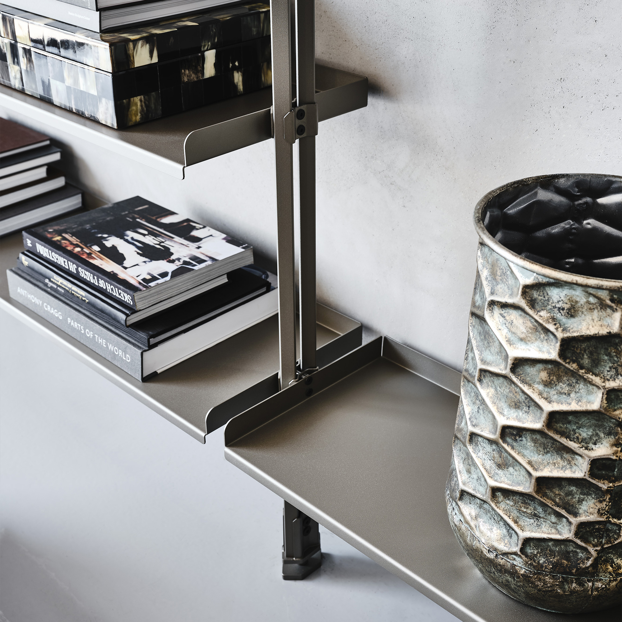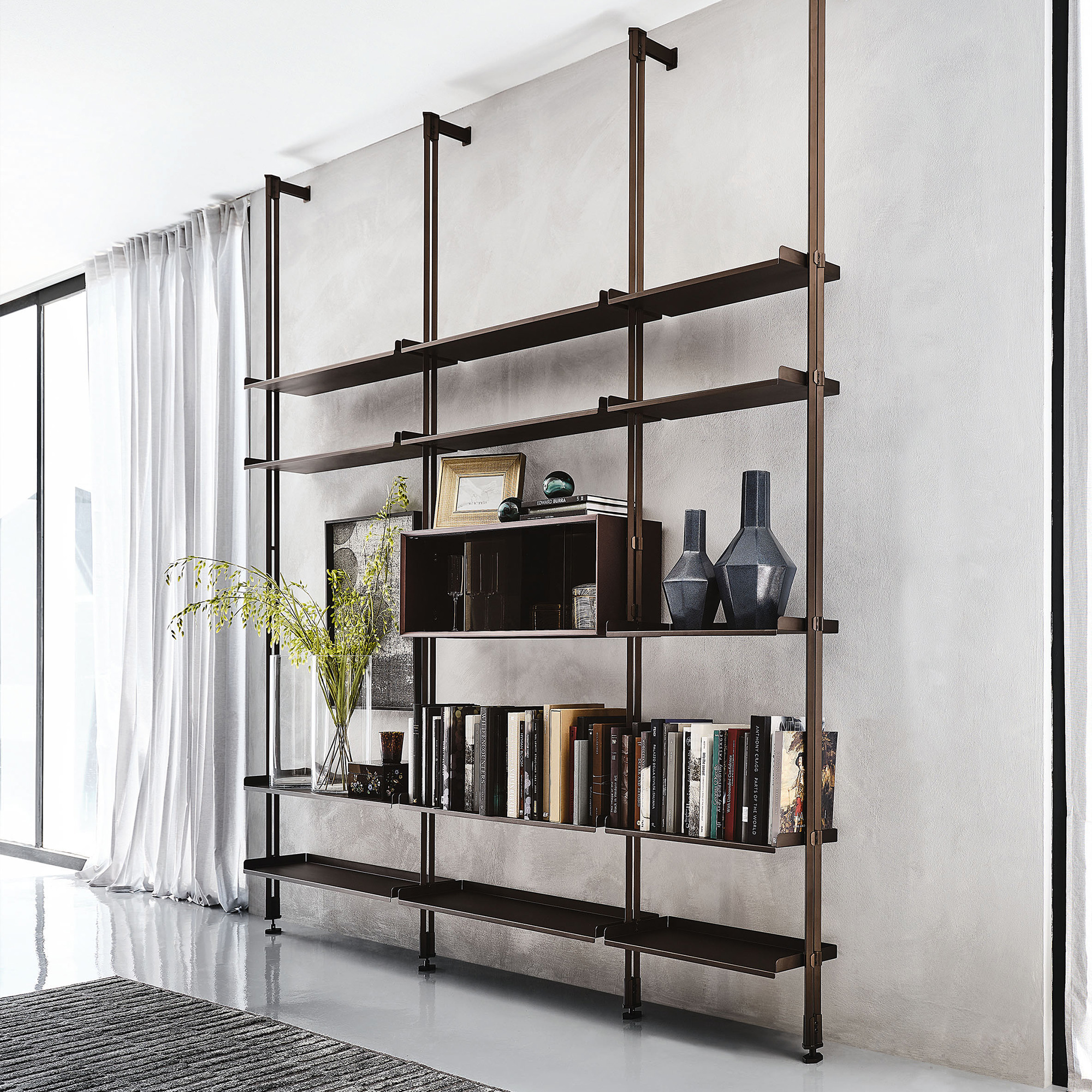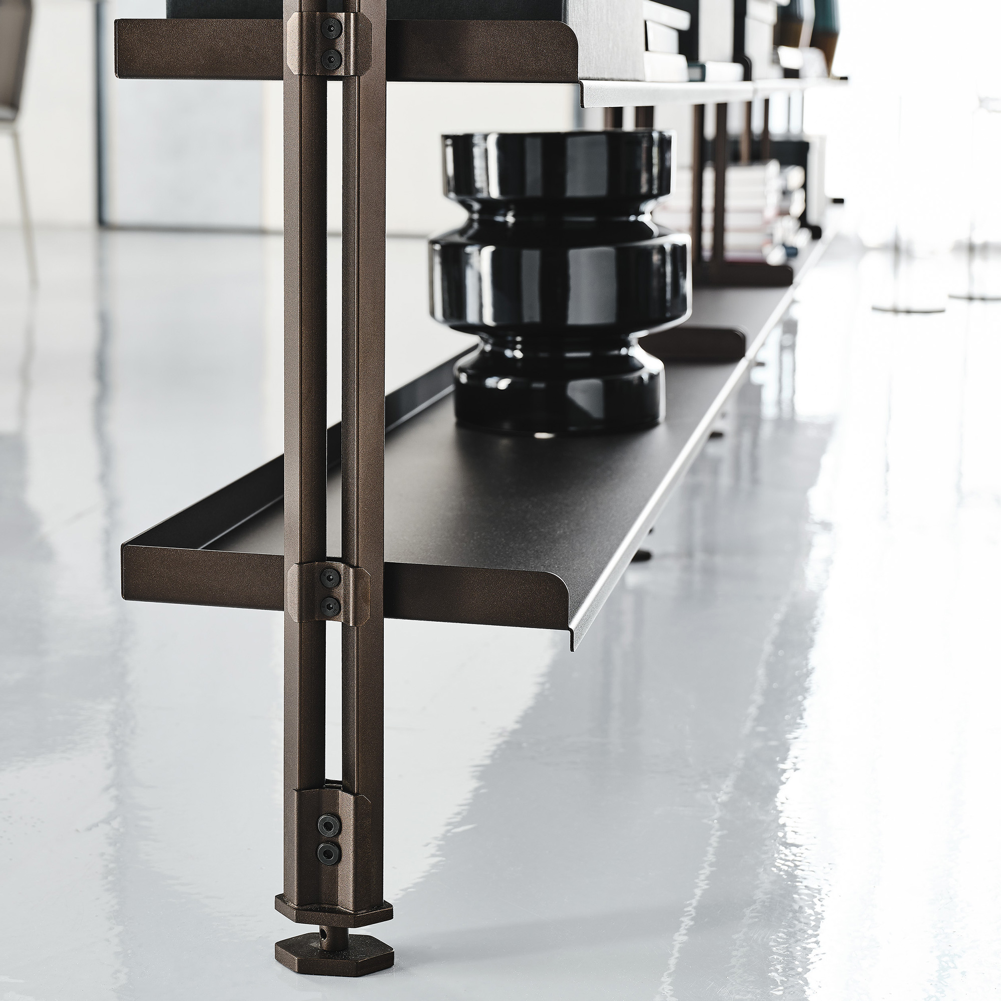 Designed to adapt seamlessly to your space, the Freeway Modular Bookcase offers variable shelf and box lengths that allow for irregular, customized layouts. Metal shelves and integrated storage boxes introduce both visual contrast and everyday functionality, while a refined palette of embossed metal, lacquered wood, and bronze glass elevates the composition. Whether placed against a wall, in a corner, or freestanding as a divider, Freeway delivers a sophisticated solution that balances form, function, and personal expression.