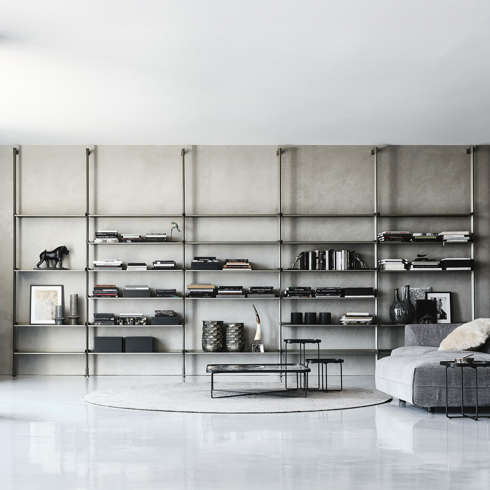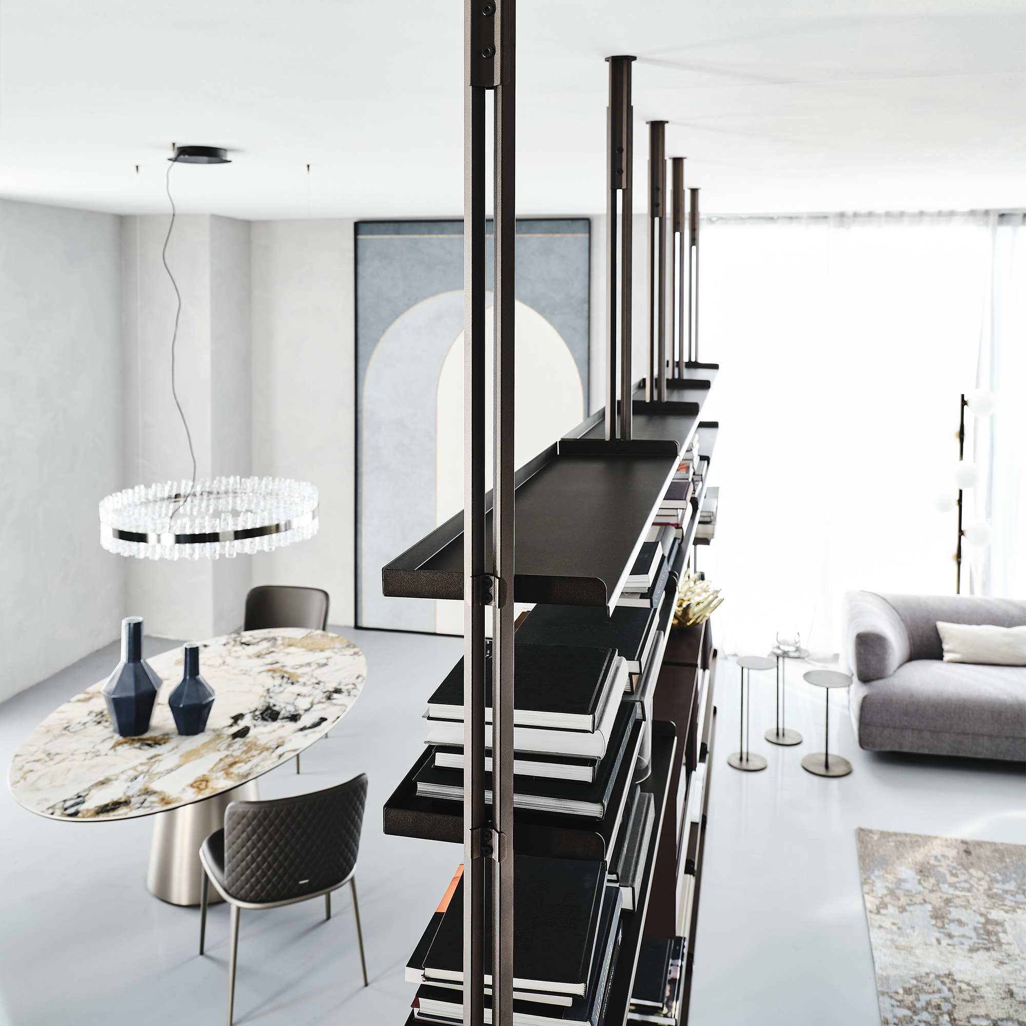 The Freeway Modular Bookcase is a striking expression of architectural balance and Italian craftsmanship, conceived by Cattelan Italia. Designed as a flexible, modular system, Freeway transforms shelving into a graphic, sculptural composition—equally suited as a wall-mounted bookcase, a ceiling-suspended installation, or a dramatic room divider in open-plan interiors. Its clean metal lines and floating volumes create a sense of rhythm and lightness while maintaining a bold, contemporary presence.