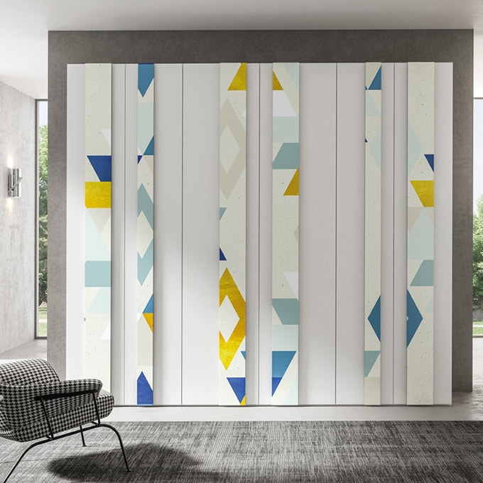 With a playful and modern design to brighten up and create contrasting elements against its white hinged doors, the Tumidei Wardrobe Configuration 373 possesses a simple yet stylish profile. Based on the Armadi system, this bold wardrobe can brighten a room with its contrasting colors and interesting design, adding a touch of dramatic flair.