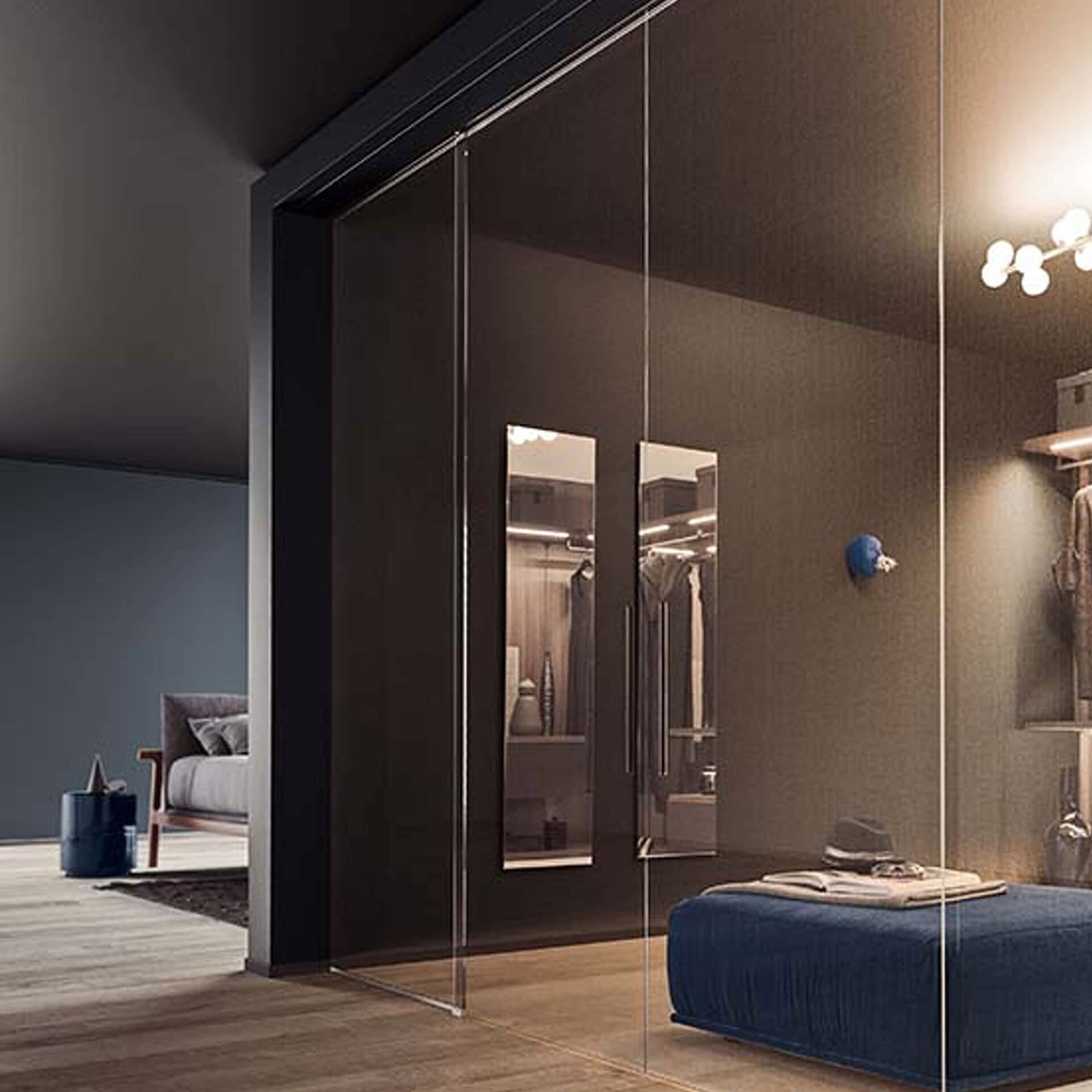 The Varius Walk-In Closet offers customizable, space-efficient storage with elegant accessories, ideal for a well-organized dressing area.