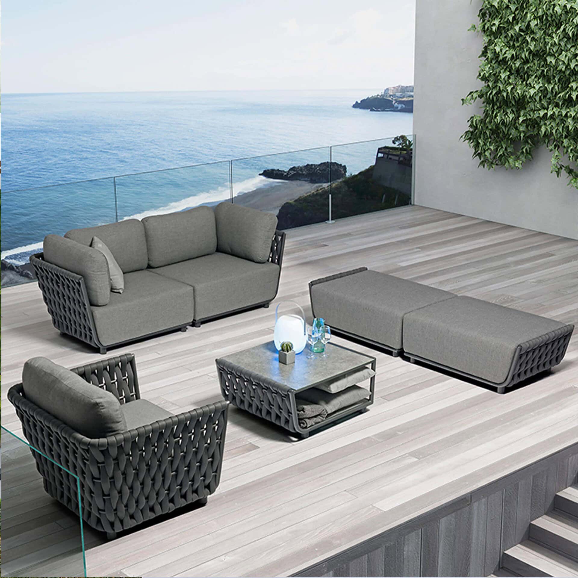 Contract-grade welded aluminum frame; Tiger brand powder coating frame; UV treated outdoor maxrope; High-density foam; UV treated durable outdoor acrylic fabric COUTUREtex, waterproof treated.