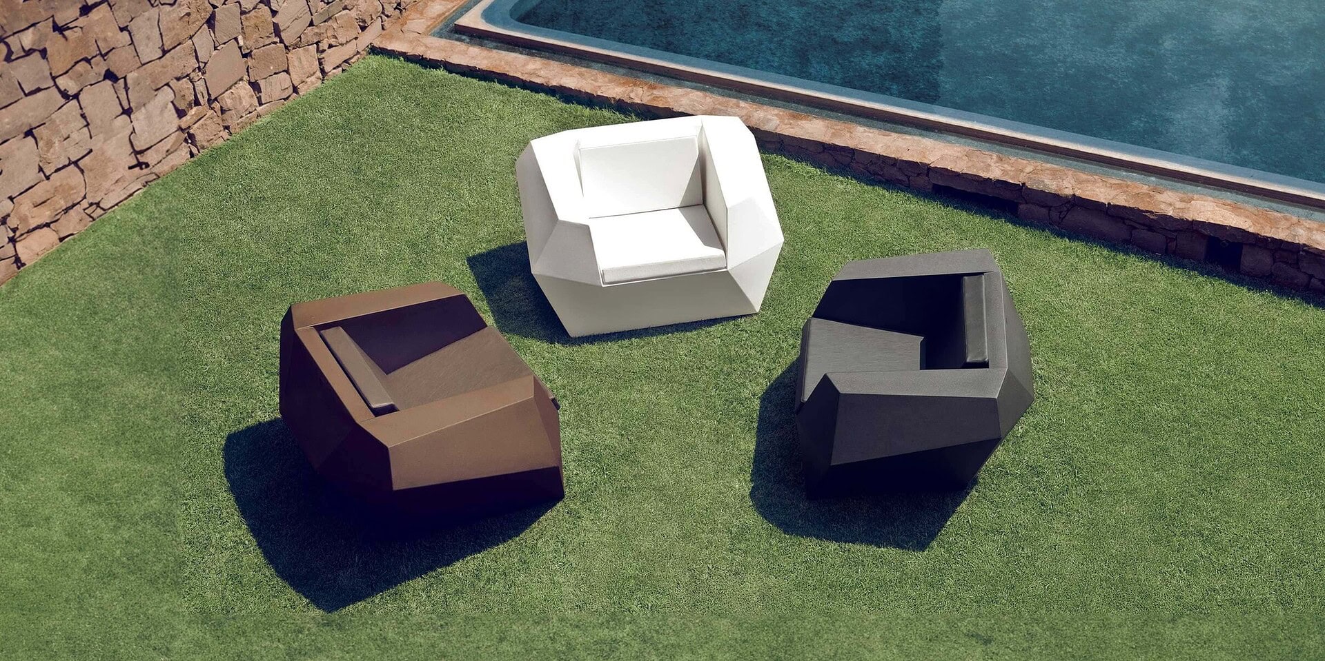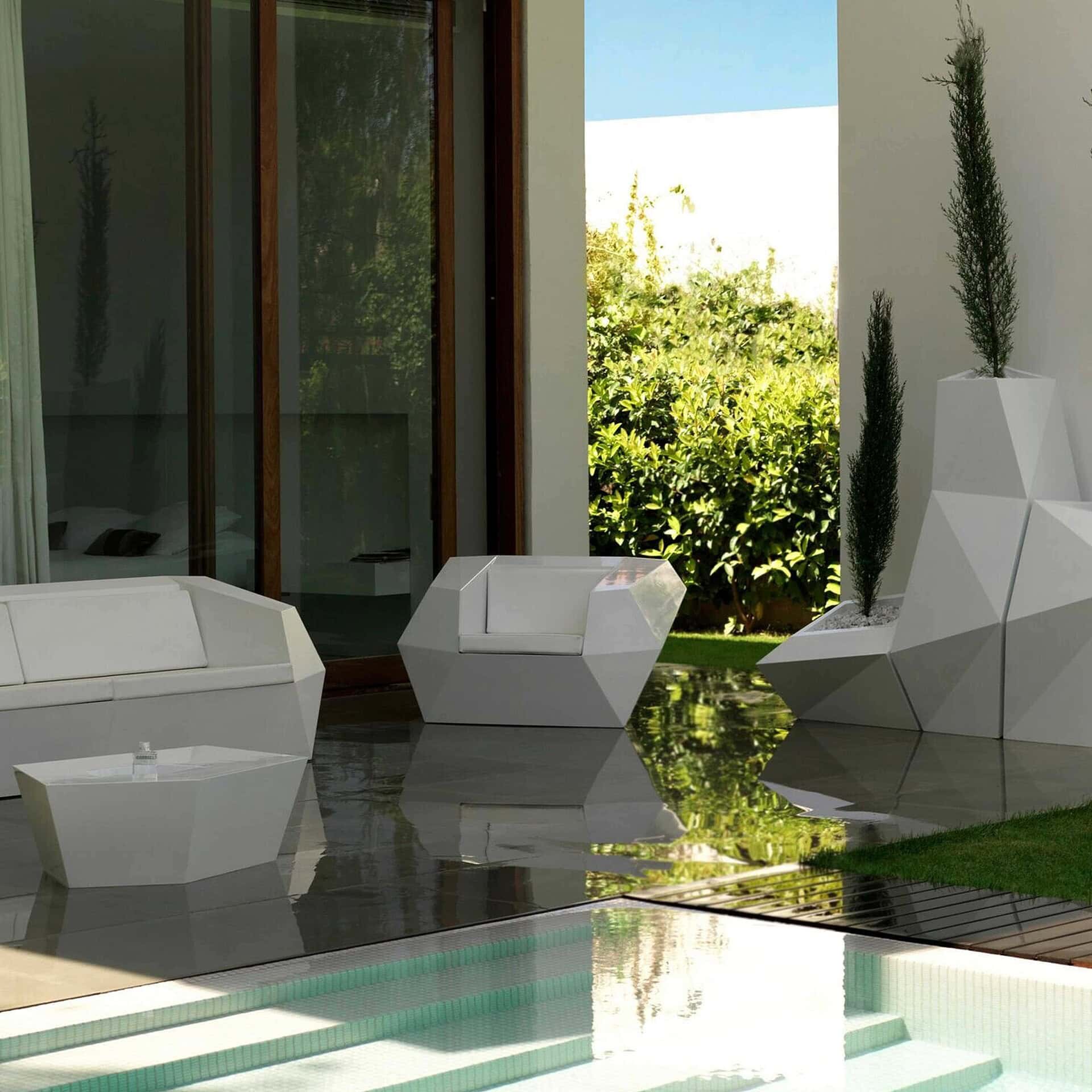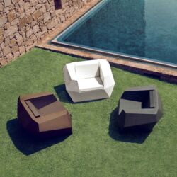 The Faz Oudoor Lounge Chair is an iconic piece designed by renowned designer Ramón Esteve. Its unique sculptural design incorporates geometric planes to form a comfortable chair that will last for years in the outdoor environment. Made from polyethylene resin, the chair is virtually indestructible, even in the hottest summer temperatures.
