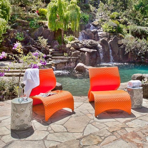 Made of high density polymer and a powder coated aluminum frame, the Modern Maui Chair will last a very long time. There is even a spot for an ottoman to slip effortlessly underneath the chair and hide it in an instant. Perfect for the lawn or backyard patio.