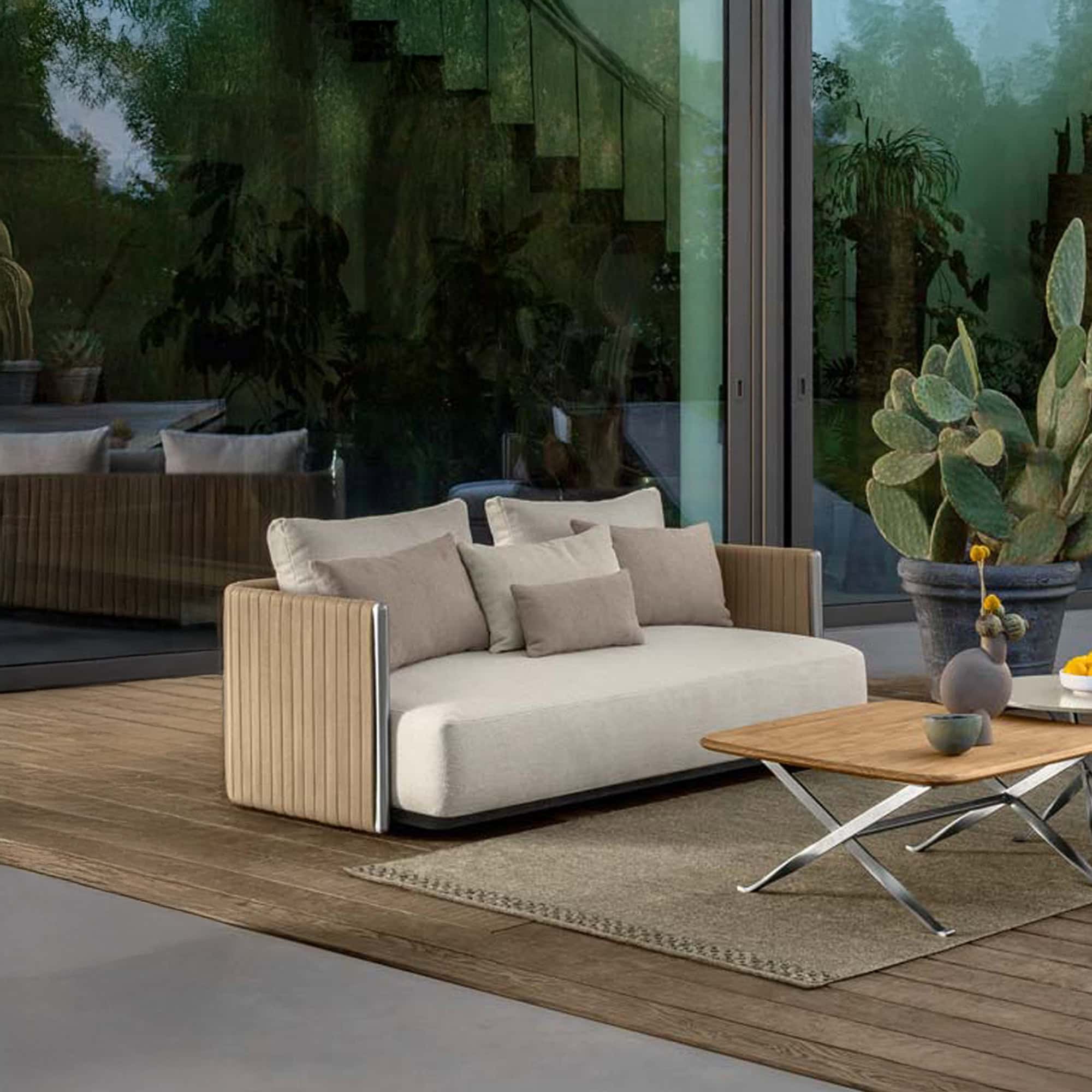 Blending sleek lines with thoughtful craftsmanship, the George 2 Seater Sofa brings refined comfort to outdoor lounging. Its signature visible stainless steel uprights and padded belt-wrapped arms strike a perfect balance between industrial elegance and inviting softness. Ideal for patios, garden terraces, or sunrooms, the George Sofa invites moments of tranquil relaxation or stylish entertaining.