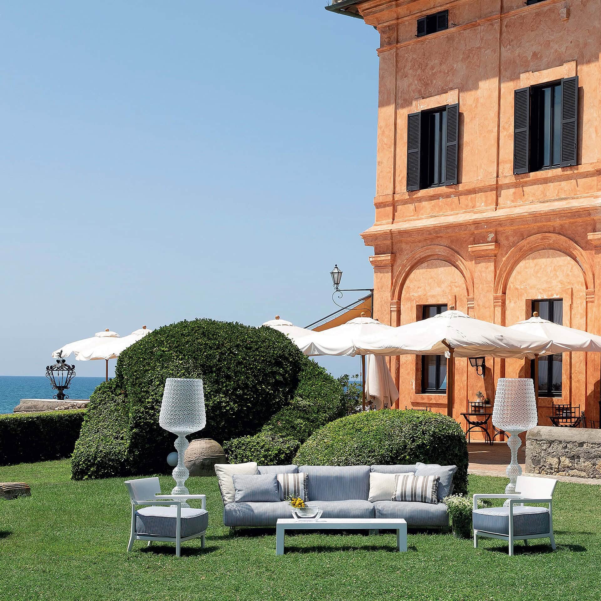 The Kartell Bubble Club Sofa pioneered of a new concept in furniture accessories, an industrial sofa made entirely of plastic. Great for outdoors.