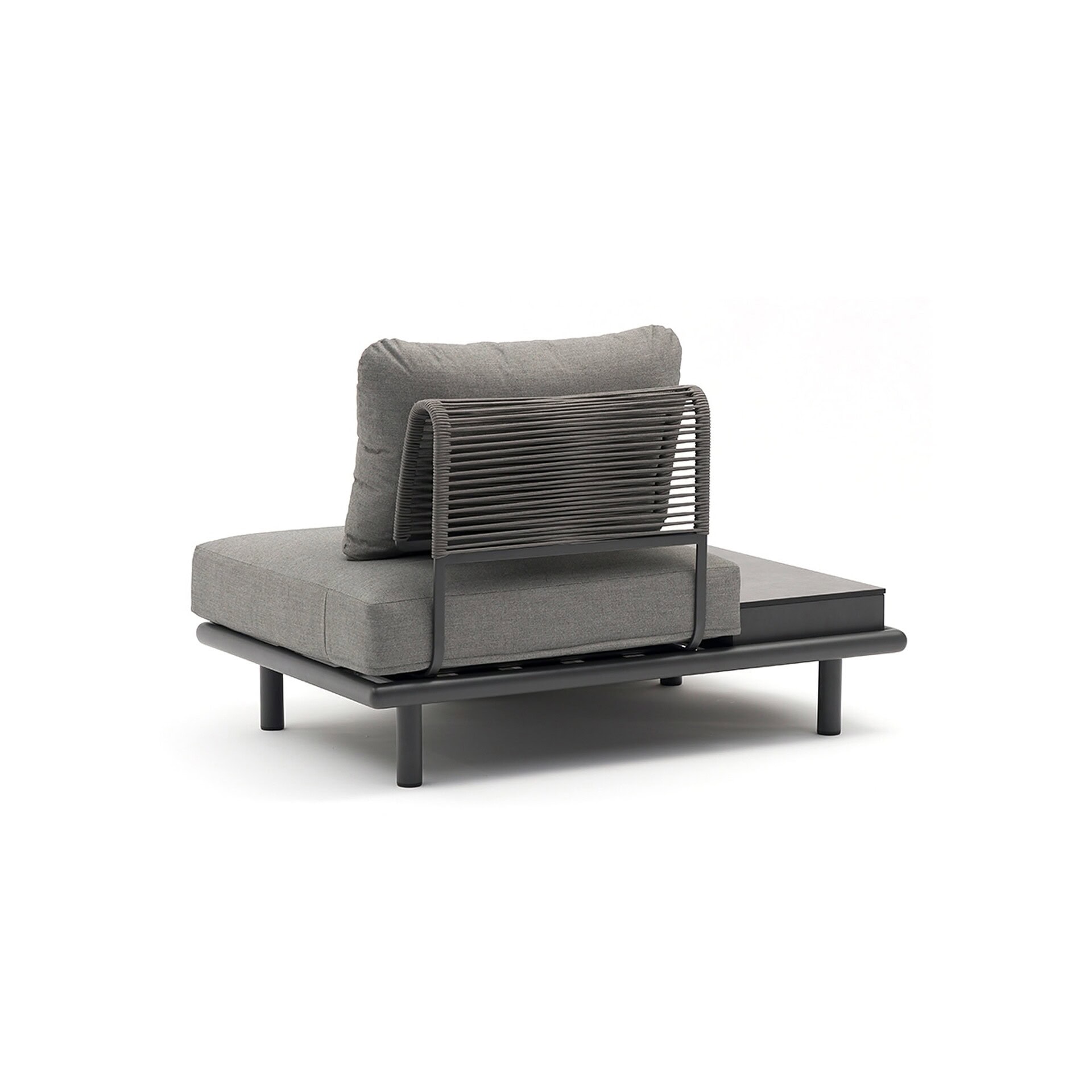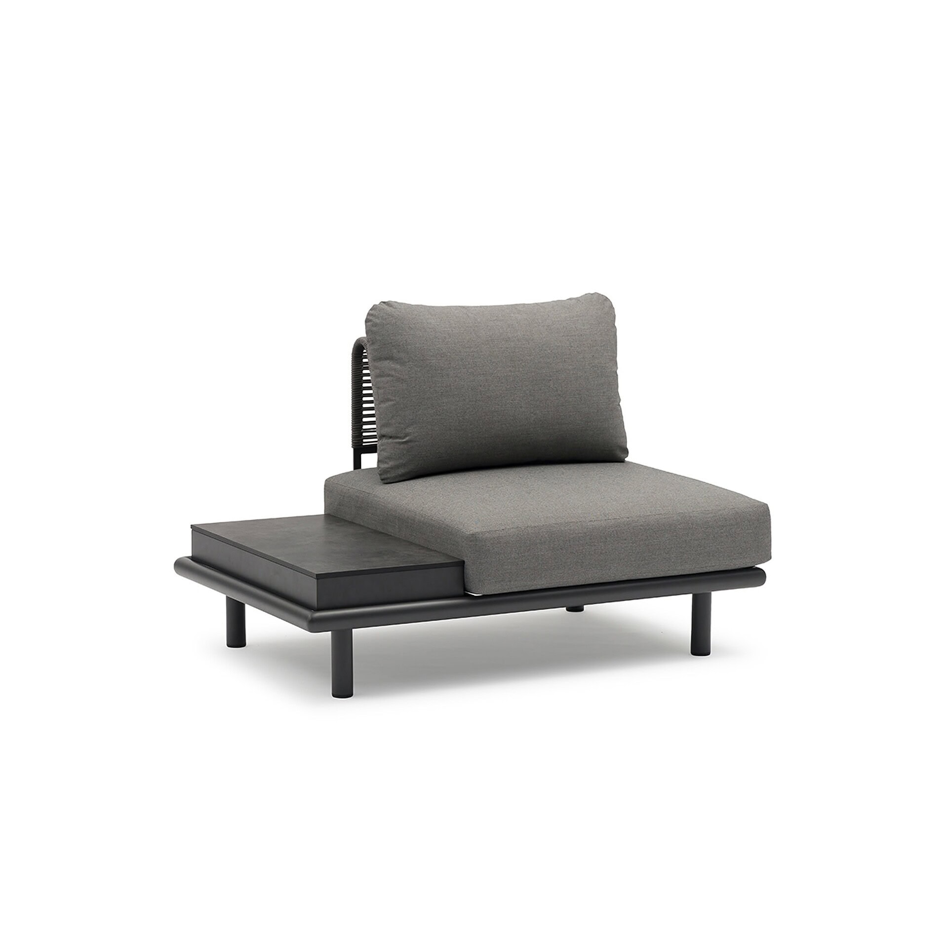 The Play Armless Chair With Side Table brings both functionality and refined outdoor style to your lounging space. Designed with seamless transitions in mind, this cleverly integrated piece merges deep seating with a built-in side table, offering space for a drink, book, or décor accent. The armless structure allows for flexible configuration, whether used as a standalone lounge or combined into a larger modular setup. Its low profile and clean silhouette lend a modern sensibility to patios, terraces, or poolside settings.