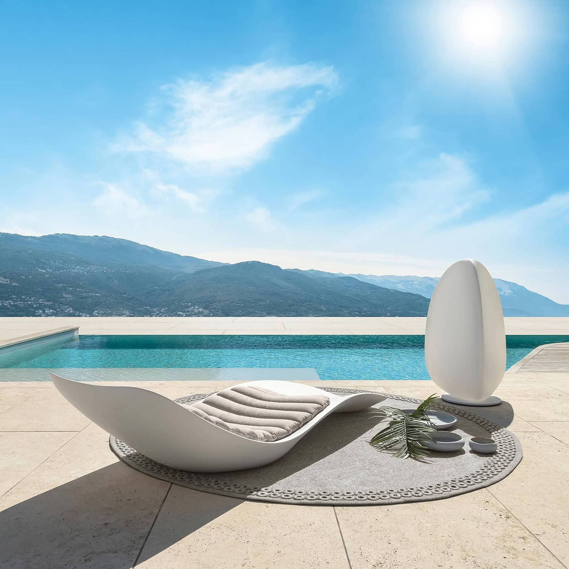 Designed by Marco Acerbis, the Reef Sunbed is a sculptural piece that invites you to unwind in style. Its smooth, flowing silhouette evokes a natural rhythm, perfectly at home in modern outdoor spaces. Crafted with clean lines and a minimalist profile, it brings an elegant and serene touch to poolside areas, patios, and sun-drenched terraces. The Reef Sunbed delivers both function and beauty, offering an ergonomic shape that supports total body relaxation.