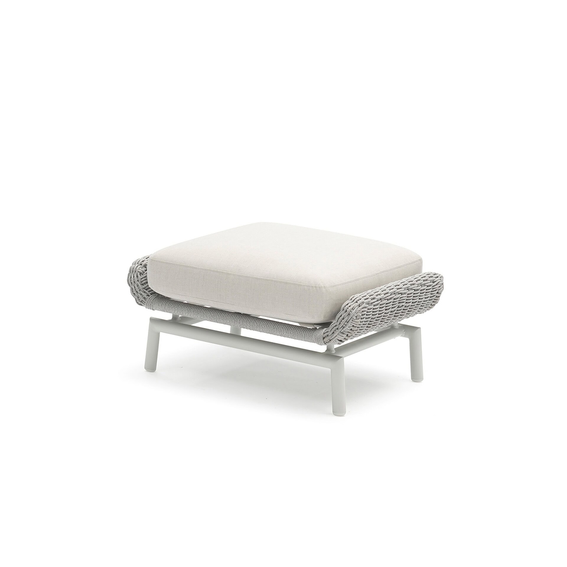 Designed for lasting comfort and durability, the Scoop Ottoman features a high-density foam cushion supported by UV-treated rope and a robust welded aluminum frame. The performance fabric is waterproof and fade-resistant, ensuring it stays fresh and inviting season after season. Its compact size makes it an easy fit into any outdoor arrangement without sacrificing visual impact.