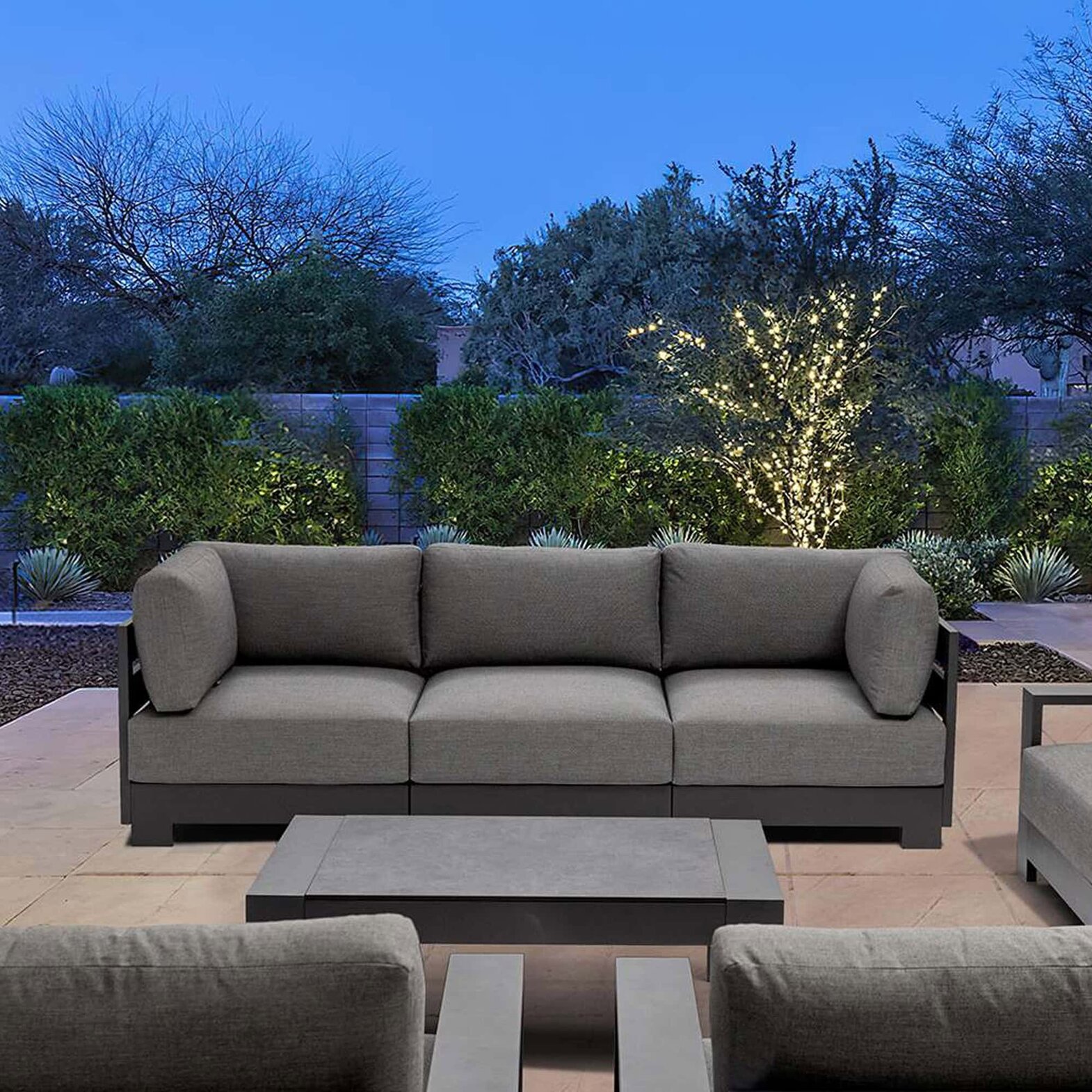 Constructed with a contract-grade welded aluminum frame, the Sky Armless Chair is finished with durable Tiger brand powder coating to resist rust and wear. Cushions are wrapped in UV-treated COUTUREtex outdoor acrylic fabric that’s waterproof-treated, ensuring longevity and performance even in exposed settings.