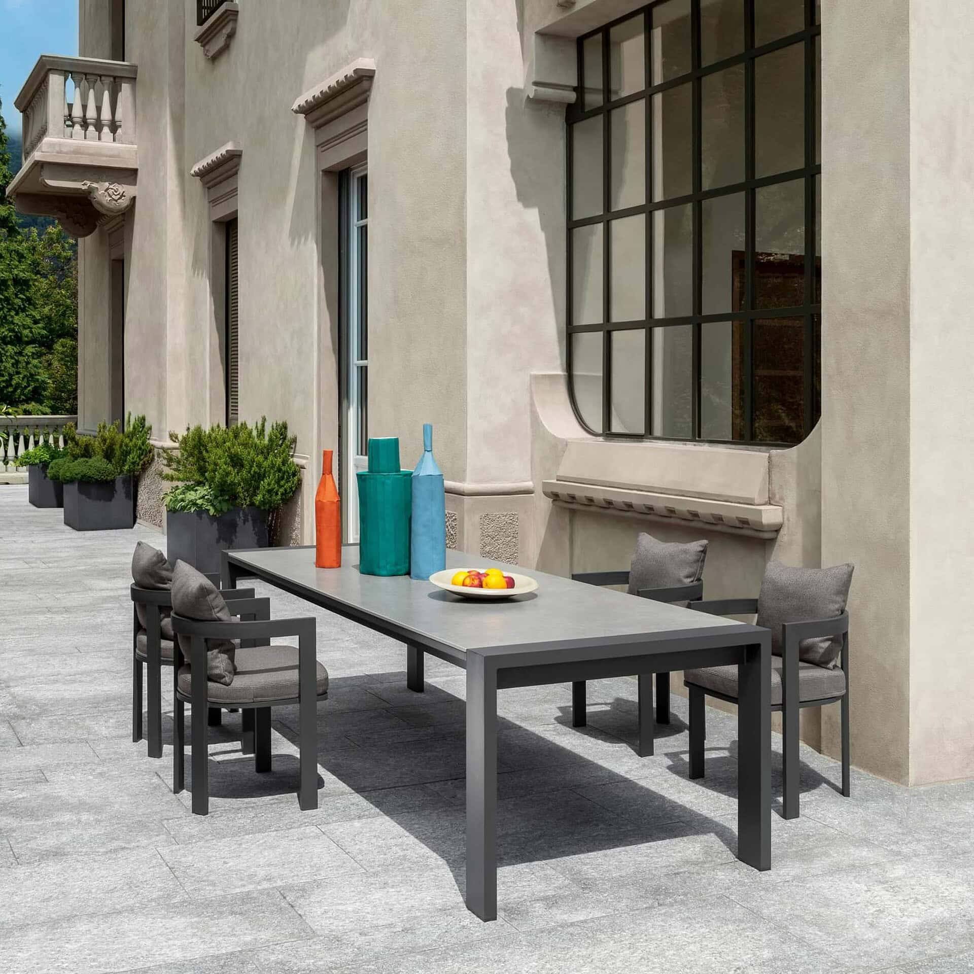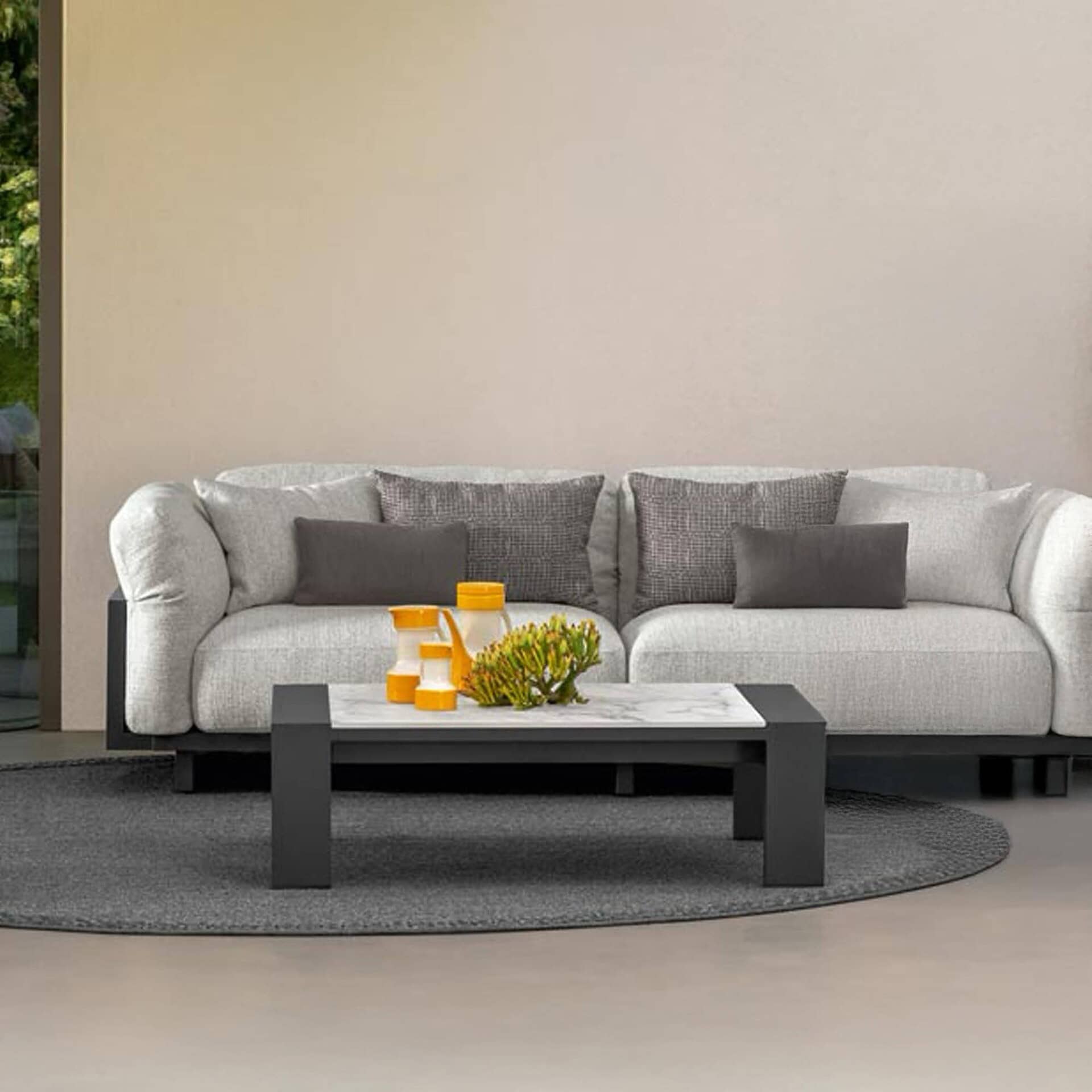 The Argo Coffee Table collection embodies a harmonious blend of refined outdoor aesthetics and exceptional durability, designed to elevate contemporary alfresco spaces. Available in a range of sizes and configurations—spanning from generously sized rectangular options to compact, geometric designs—each piece features a solid structure crafted from premium aluminium or meticulously treated Accoya wood. The stoneware tabletop, offered in an array of color variations, offers a sleek and weather-resistant surface that stands up to the elements, making these tables an ideal choice for dynamic outdoor lounging or dining areas.