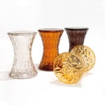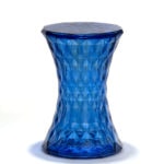 Made of polycarbonate, this contemporary side table or side stool is shaped like an hourglass. The pattern of the Kartell Stone Side Table has the appearance of a crystal with a lot of facets, which reflect the light. This designer side table is available in beautiful colors: amber, blue, smoke, yellow, red and crystal. Isn't it an extraordinary design?