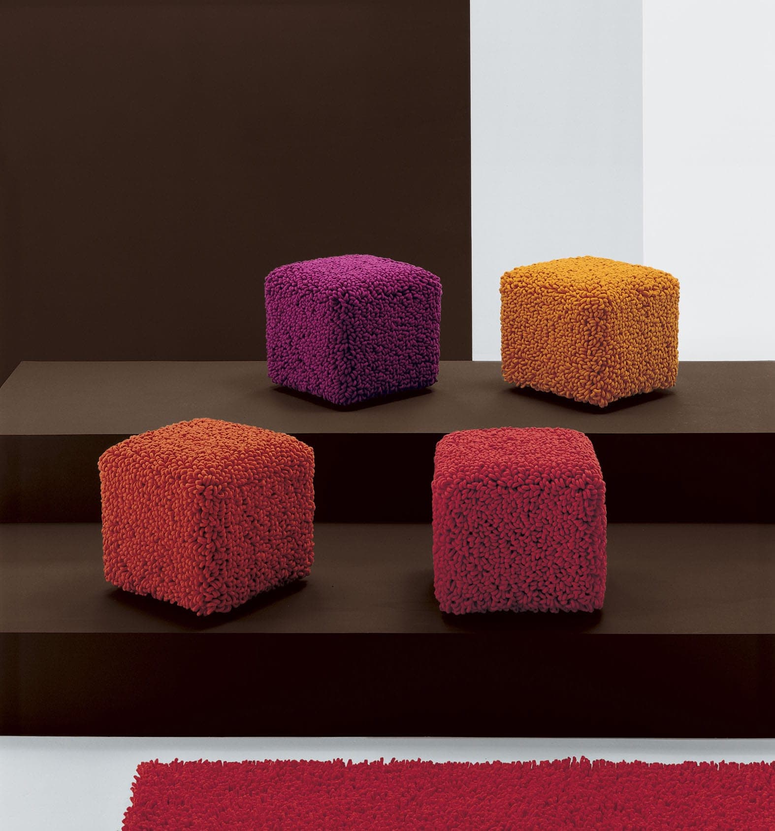 With a sturdy wooden frame, the modern Bon Bon Ottoman situated on castors is available in a variety of vibrant and striking colors. Sure to make you smile, the ottoman is practical, functional and cute! Some of the ottomans even use the wool found in company's carpets.