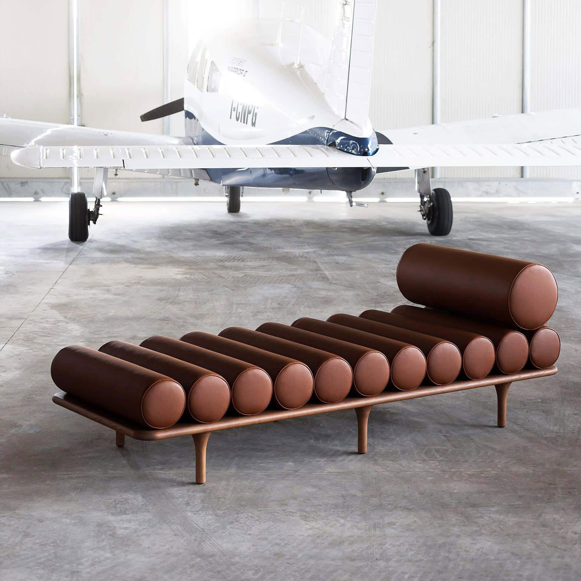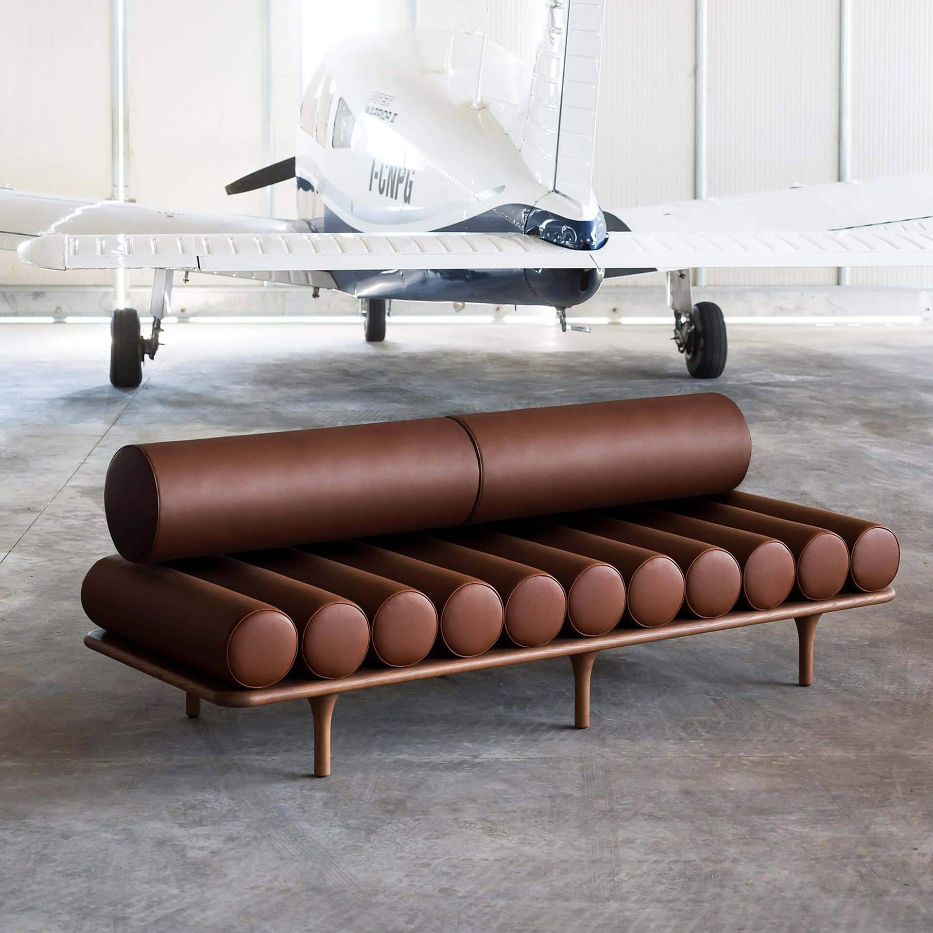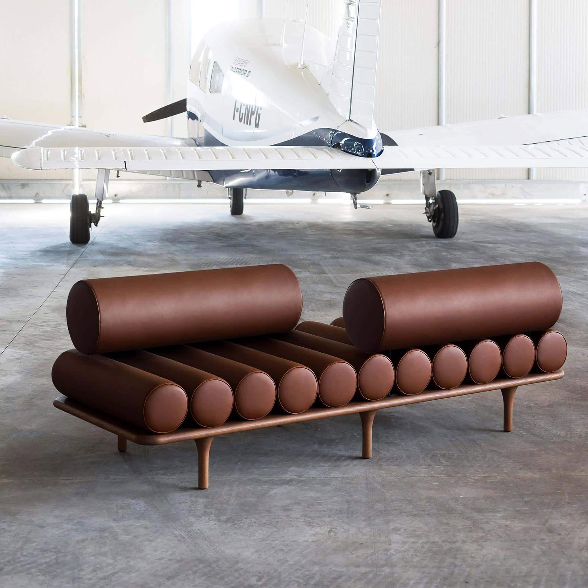 The daybed is an invitation to relax or wait in comfort. Thanks to its sleek linearity, it can stand alone or be a fitting addition to an arrangement of furniture pieces and accessories, ideal for both domestic use and public spaces. The daybed can also be used at home as a guest bed, thanks to a special linen-upholstered, softly padded mattress that, when placed on the bolster pillows, transforms the seat into a real sleep oasis. By applying the Japanese lifestyle philosophy to the new needs of the contemporary home, the mattress is a removable accessory that allows an increasingly versatile use of home furnishings.
