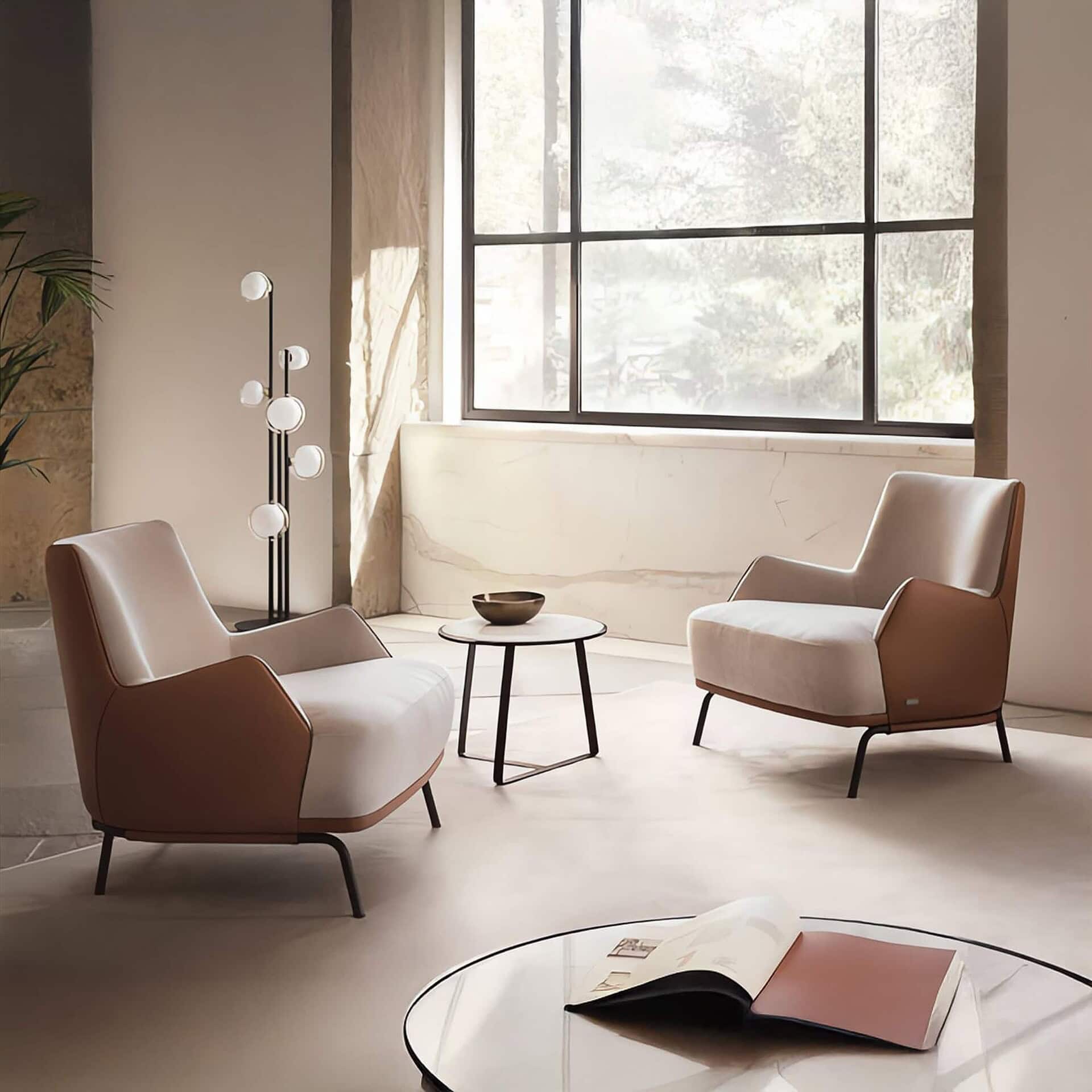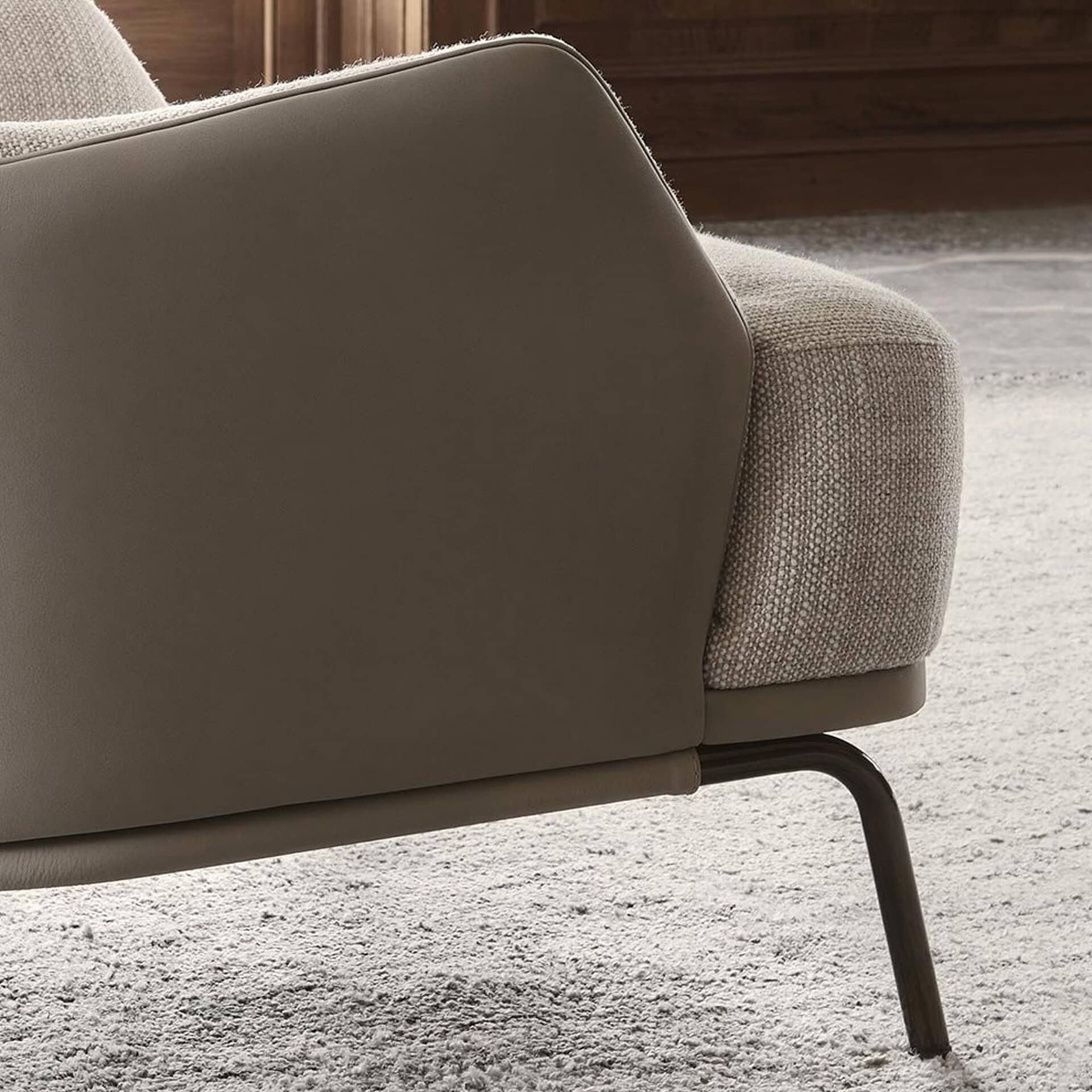 Expertly handcrafted in Italy, the Bea Sculpted Lounge Chair offers a choice of luxurious leather or fabric upholstery, complemented by metal legs available in Gummetal, Satin Brass, or Antique Bronze. Optional contrast stitching allows for personalized detailing, while the removable seat and back cushions provide versatile comfort. With its harmonious proportions and elevated materiality, the Bea Sculpted Lounge Chair adapts beautifully to modern, transitional, and classic interiors.