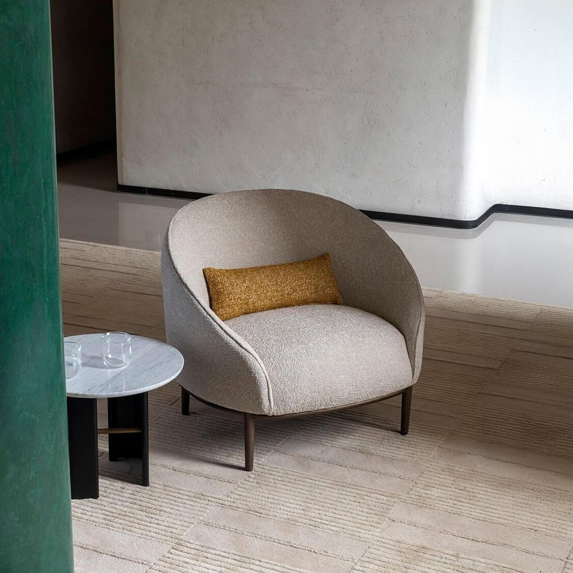 The Belt 360° Swivel Armchair combines sculptural form with exceptional comfort, offering a contemporary accent piece for any living space. Designed with a rounded silhouette and upholstered in soft fabric, this armchair embraces you with generous padding and refined details. A distinctive decorative belt adds a touch of tailored elegance, available in a curated selection of rich leather finishes.