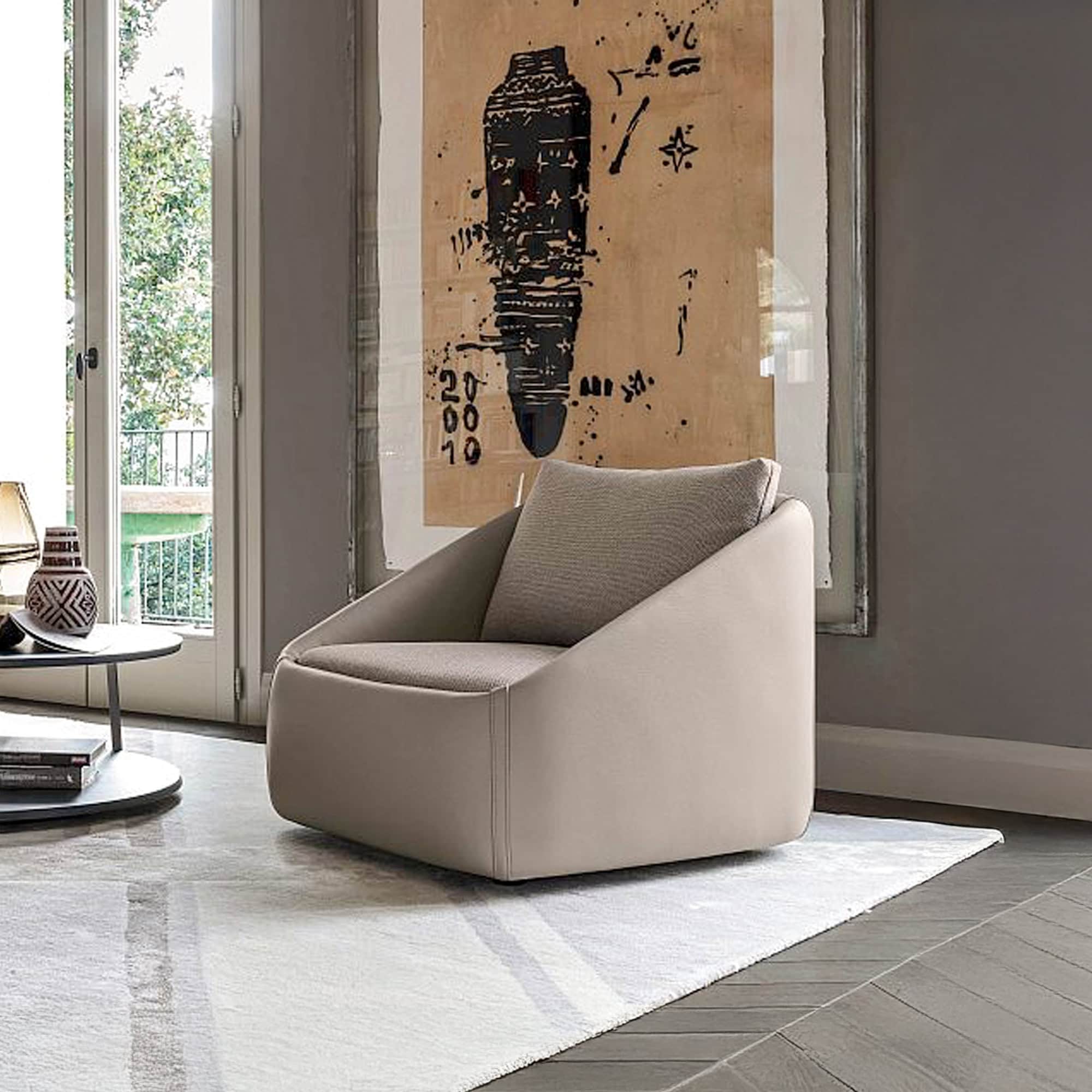Designed to harmonize visual structure and relaxed comfort, the Bend Lounge Armchair showcases Ditre Italia’s mastery of form through subtraction—removing excess to reveal pure, sculpted geometry. Its solid fir wood frame, combined with pre-tensioned elastic webbing and high-resilience polyurethane foam, delivers lasting support with a luxuriously plush feel. Available fully upholstered in fabric or leather, or in mix versions combining a leather shell with a fabric interior, Bend offers both tactile richness and design versatility. From refined lounge corners to elegant reading nooks, its rounded silhouette adds an effortlessly contemporary touch to any space.