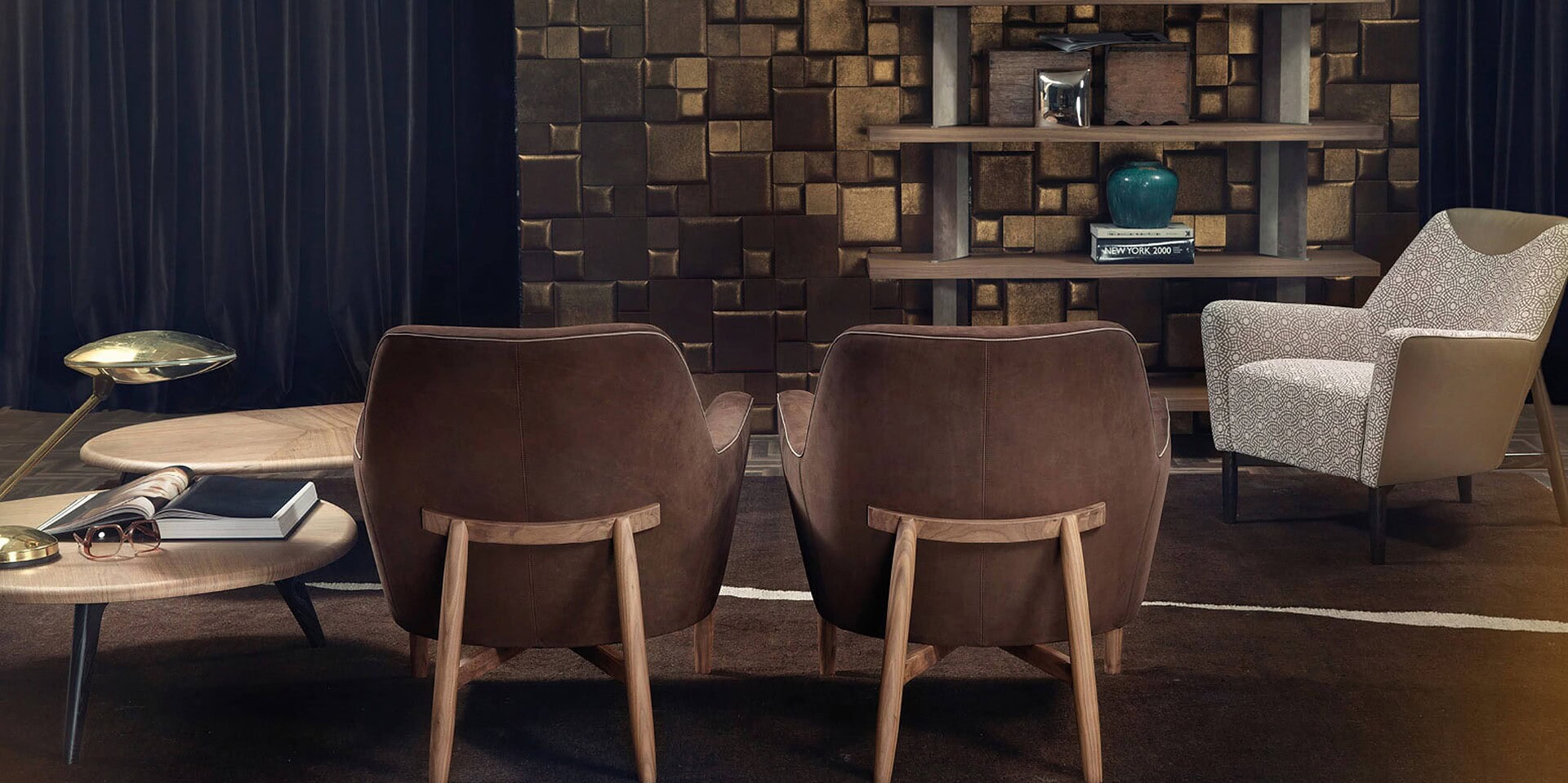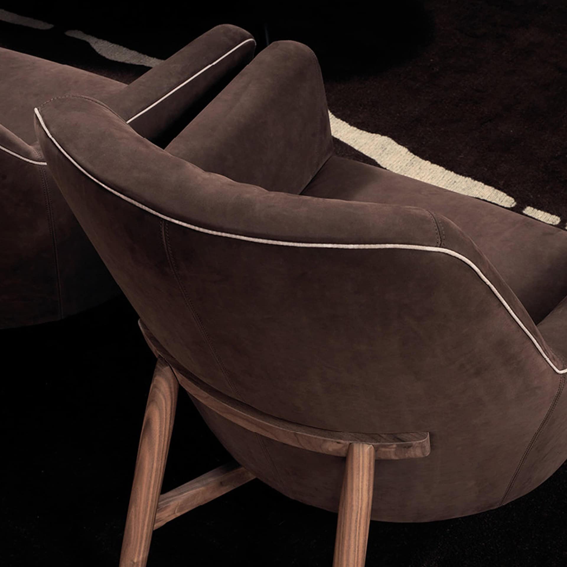 Eve Plus is a unique armchair, with its own special comfort. Its shape holds and supports your entire body. It comes in different leathers or fabrics—so it's easy to create your own design! The base that supports it can be made of wood or steel and comes in various finishes.