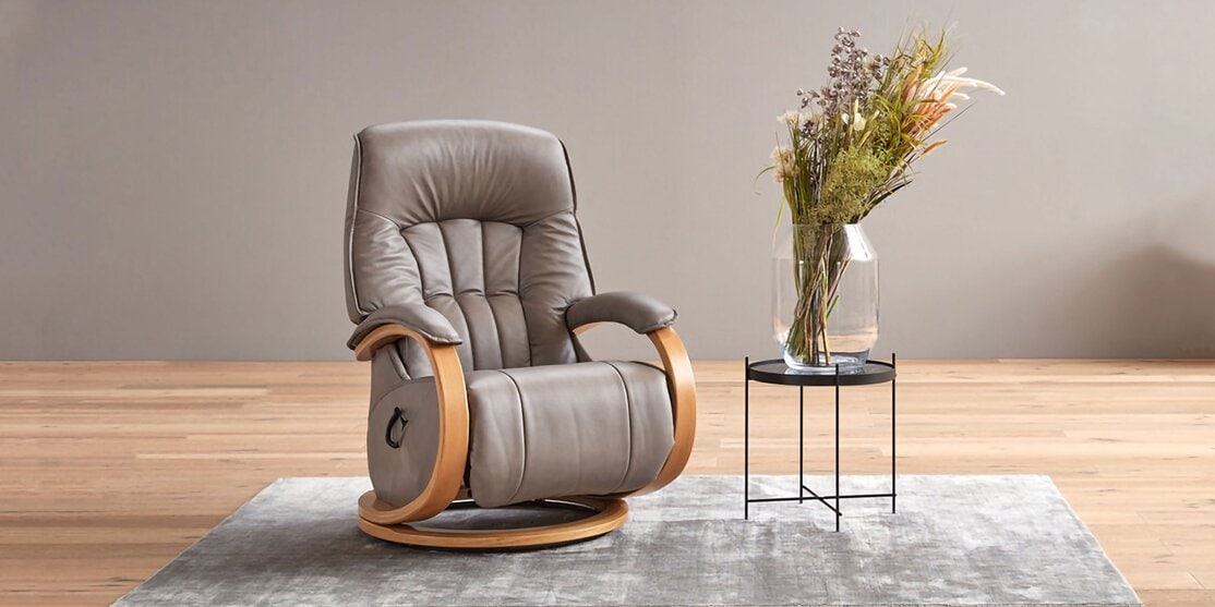Both functional and aesthetically pleasing. As with all upholstered furniture from himolla, the MOSEL with a wooden swivel ring impresses with its excellent functionality. The chair comes with manual seat adjustment: the backrest is adjusted to your requirements using a loop and with the help of a gas spring mechanism, and you can adjust the position of the leg rest by simply moving your body. The tilt angle adjustment of the headrest is also simple. The MOSEL comes with a wooden swivel ring, which makes it possible to swivel the chair by 360 degrees. You can also opt for an additional ring to increase the seat height by a further 2.5 cm.