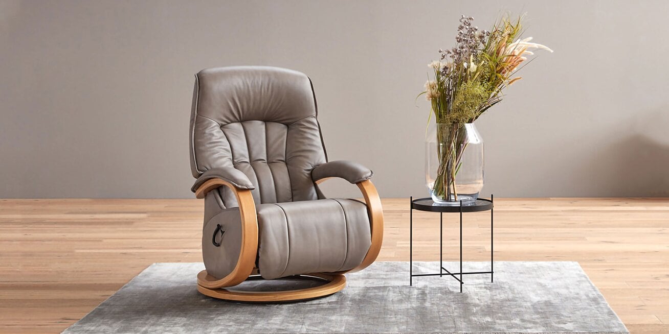 Comfortable CUMULY chair with a wooden swivel ring for pure relaxation. It's a comfortable recliner that impresses in all respects visually.