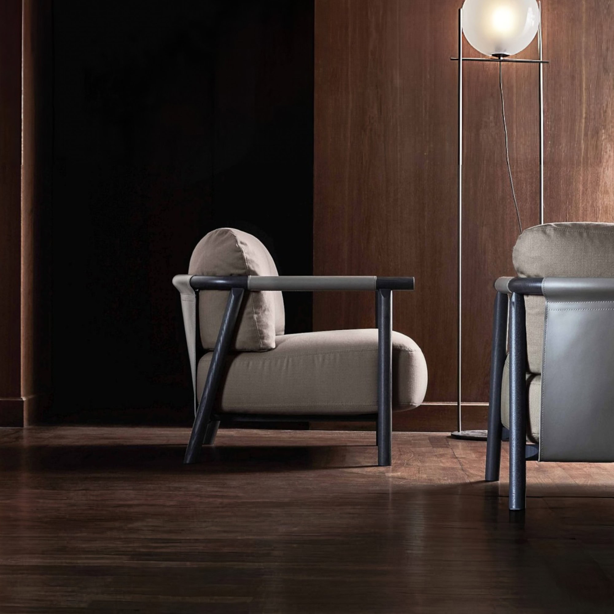 Built with a painted ash wood structure and E1 plywood base, the Nathy Armchair is thoughtfully constructed for long-lasting support. The seat and backrest are padded with a mix of memory foam, Tecnoform, and optional down or ECOSY fiber fill, delivering a plush, ergonomic experience. Available in a wide range of fabric and leather combinations, Nathy can be tailored to fit any mood—from earthy and warm to sleek and sophisticated.