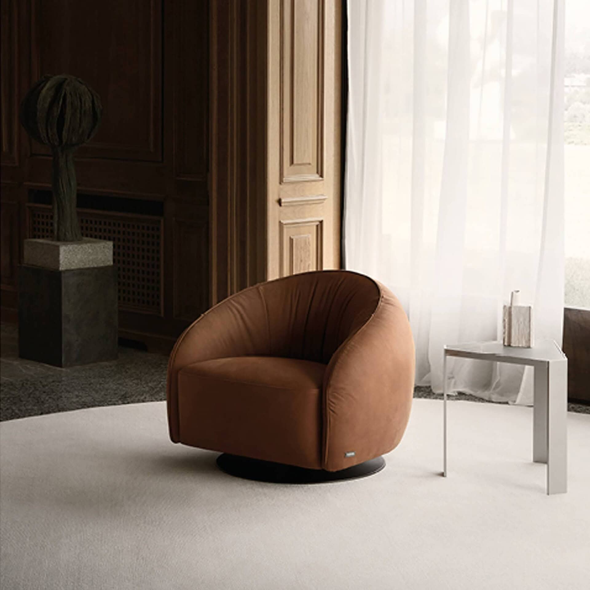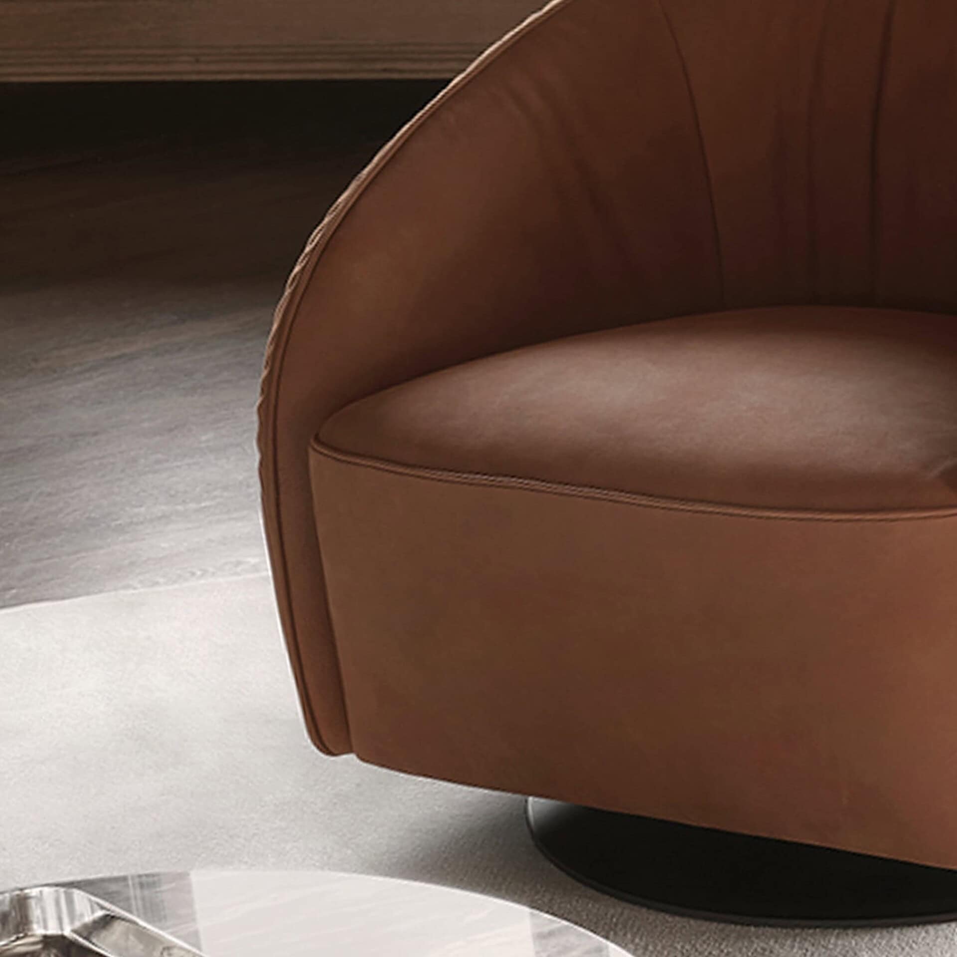 With its gentle curves and enveloping silhouette, the Nest Armchair radiates comfort and modern sophistication. Its low, rounded back and vertically stitched detailing offer a soft sculptural presence, making it a welcoming statement piece in any lounge or reading corner. Compact yet striking, the Nest is perfect for both residential and hospitality settings where style and relaxation go hand in hand.