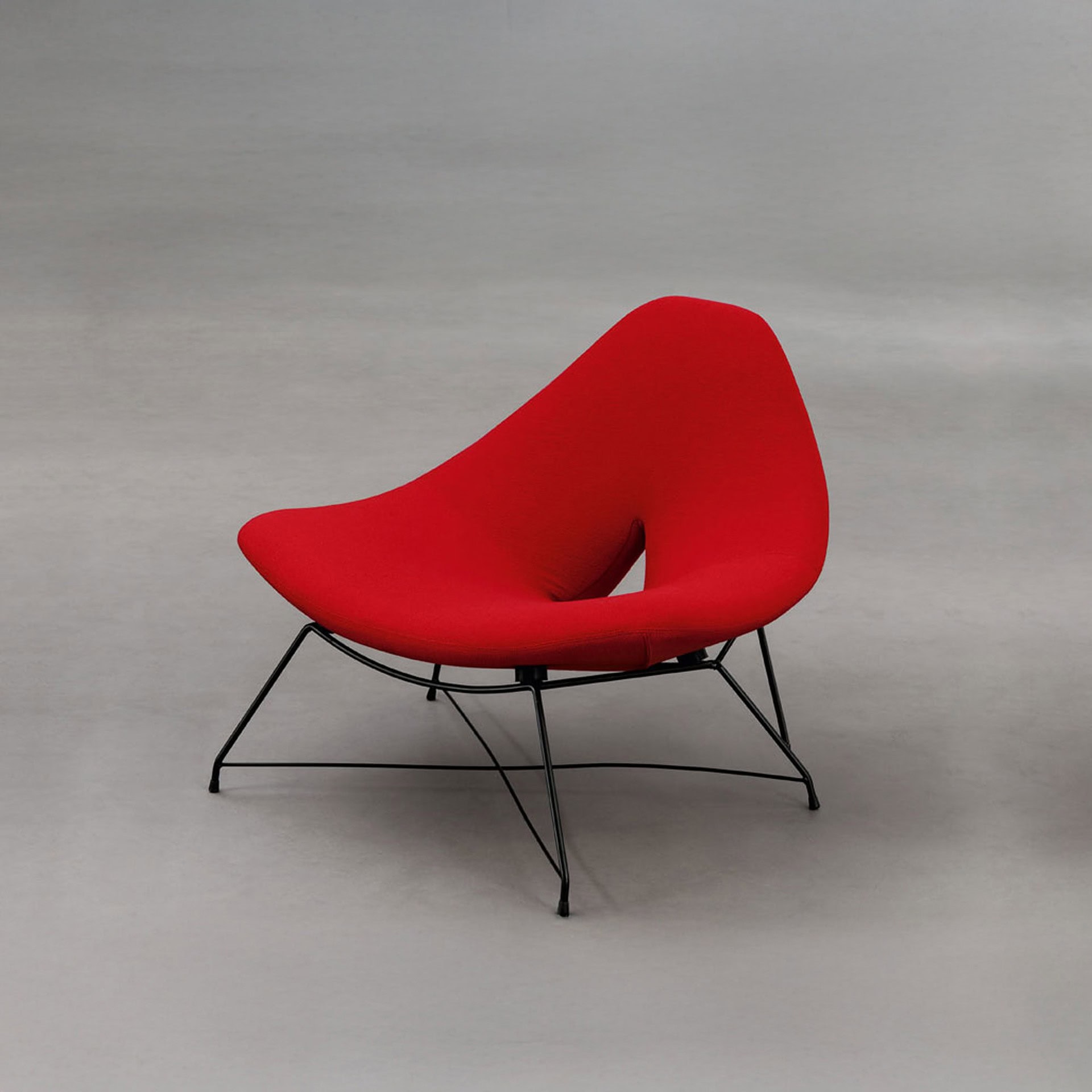 Resting on a slender metal base, the upholstered shell achieves a refined balance between softness and structure. The contrast between tailored upholstery and the graphic base enhances its modern character, making the Next Wrap-Around Armchair equally suited to curated living rooms, bedrooms, and sophisticated hospitality environments. Whether styled as a standalone accent or paired symmetrically, it introduces personality, comfort, and a sculptural focal point to any space.